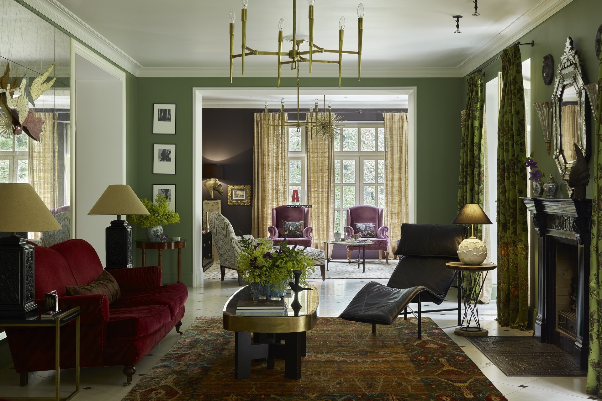 Первый этаж – парадная анфилада гостиной, каминной и столовой, они объединены широкими открытыми порталами. Диван, Guadarte.