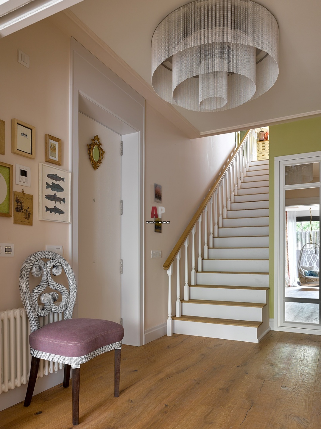 Фото интерьера лестницы квартиры в стиле фьюжн Фото интерьера лестничного холла квартиры в стиле фьюжн