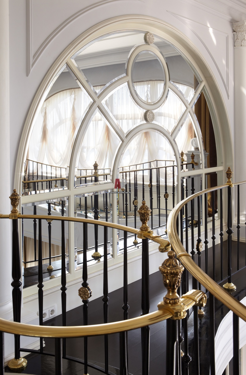 Больше света и воздуха дает декоративная «обманка» - арочные зеркала, напоминающие окна. Они расположены по обеим сторонам галереи третьего этажа.