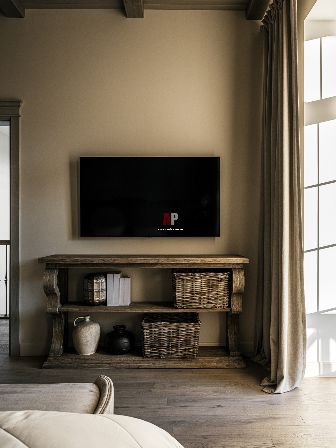 Гостиная оформлена в светлой палитре с тактильными фактурами.