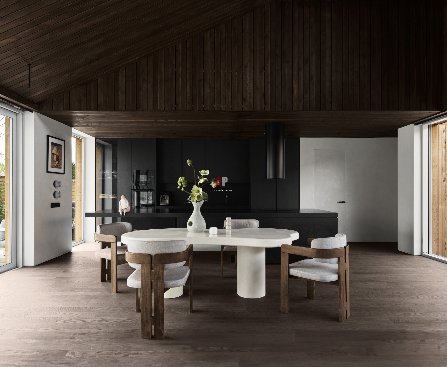 Фото интерьера столовой деревянного дома в скандинавском стиле