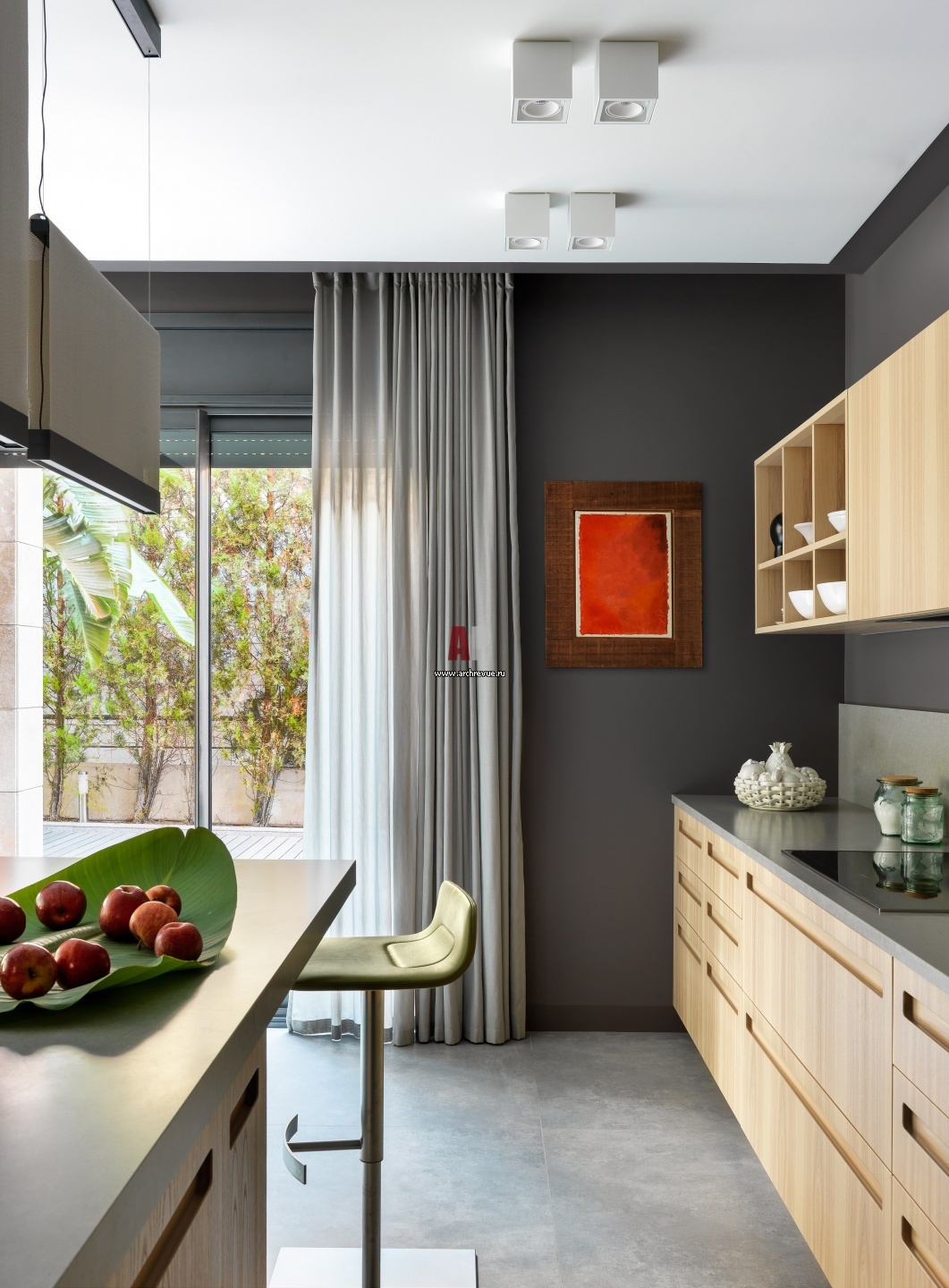 Интерьер кухни с элементами современного скандинавского дизайна.