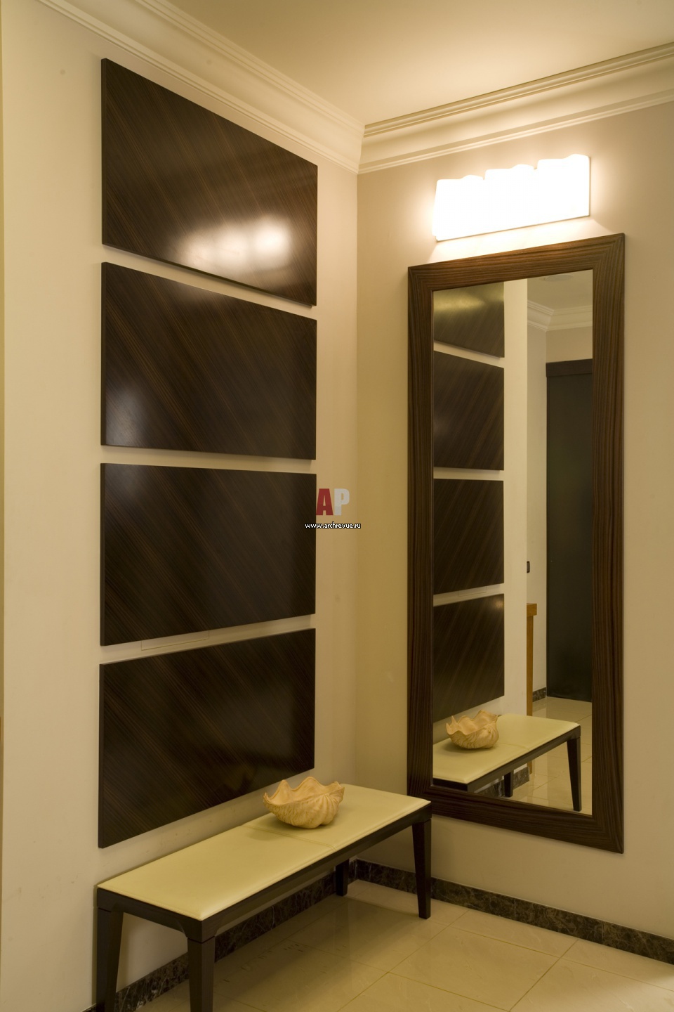 Слева от входной двери панно из четырех полированных палисандровых панелей.