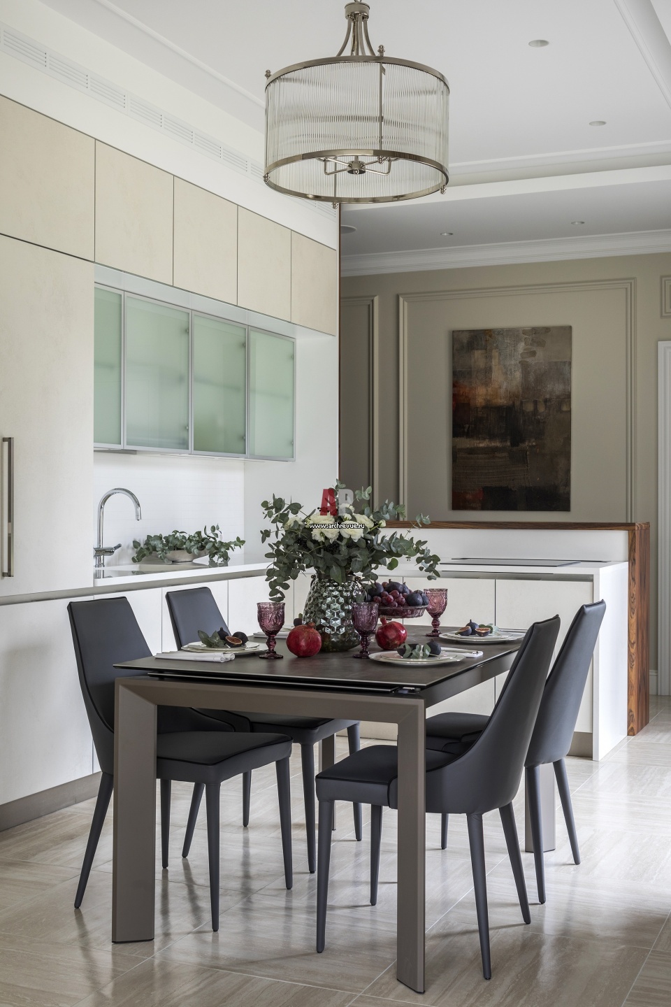 Современная кухня растворяется в интерьере. Белый гарнитур сделан на заказ на фабрике Giulia Novars.