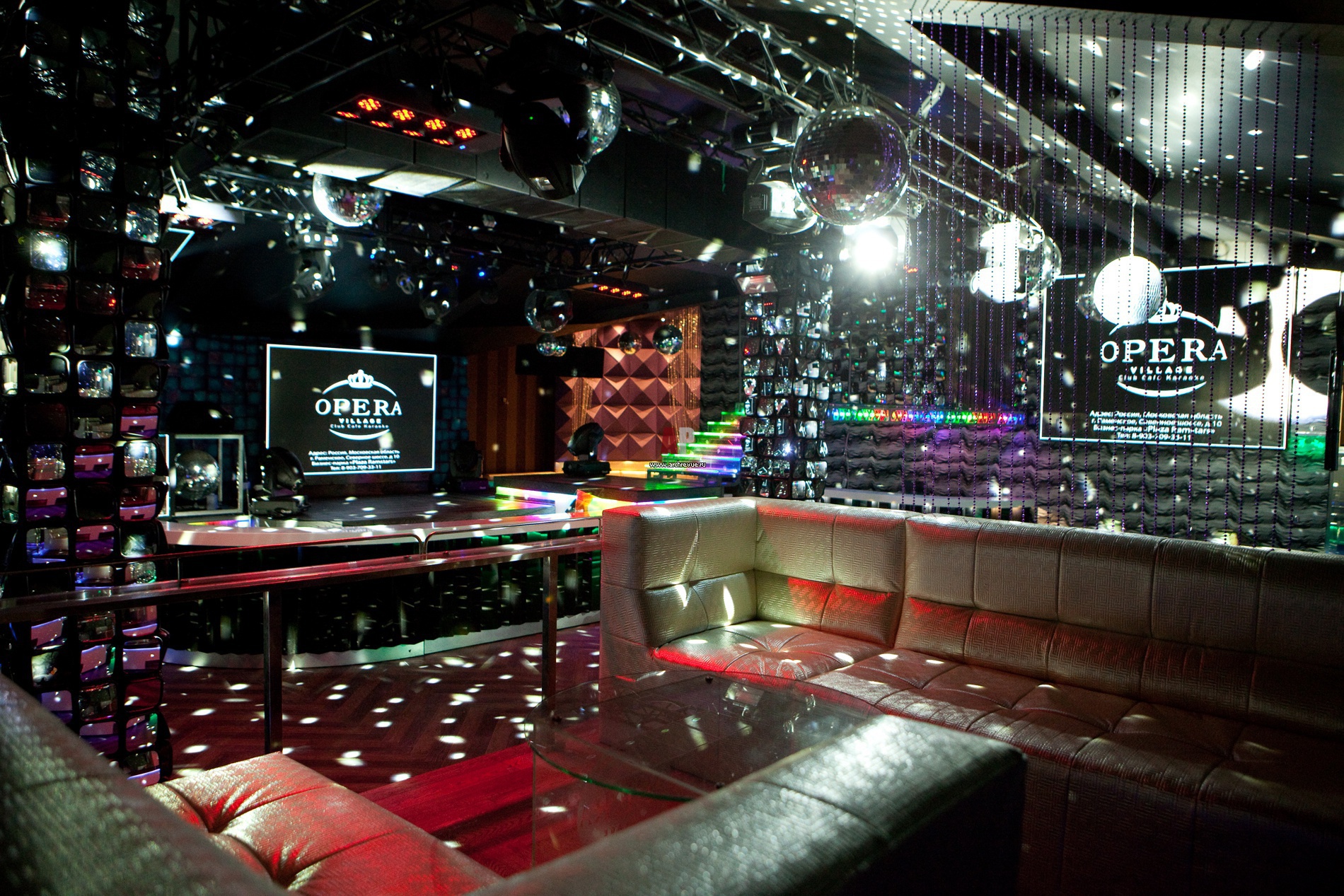 Клуб Opera Village решен в абстрактном, кубическом стиле. Авторы использовали приём множественных зеркальных отражений, которые дробят пространство и намеренно «дезориентируют» гостя.