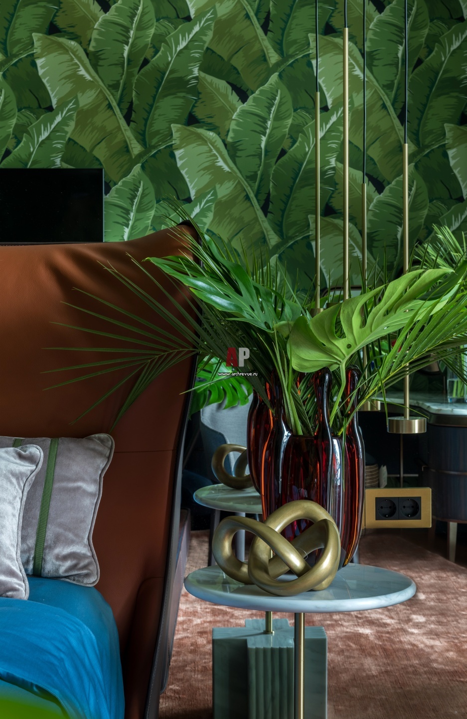 Семейная квартира с экзотическим декором. Интерьер родительской спальни.