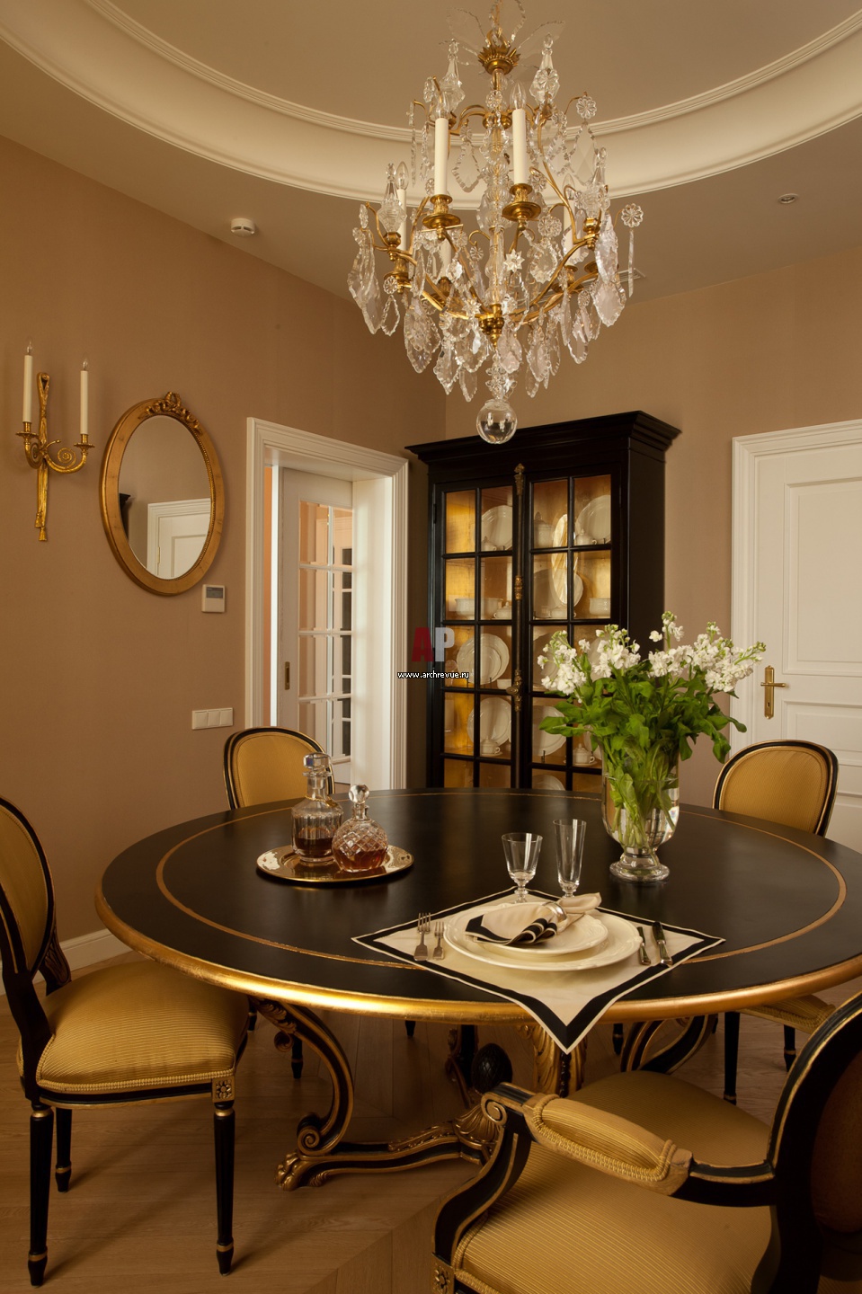 Парадная столовая занимает отдельное помещение. Витрина Mis en Demeure. Стулья Century Furniture. Люстра Mathieu Lustrerie.