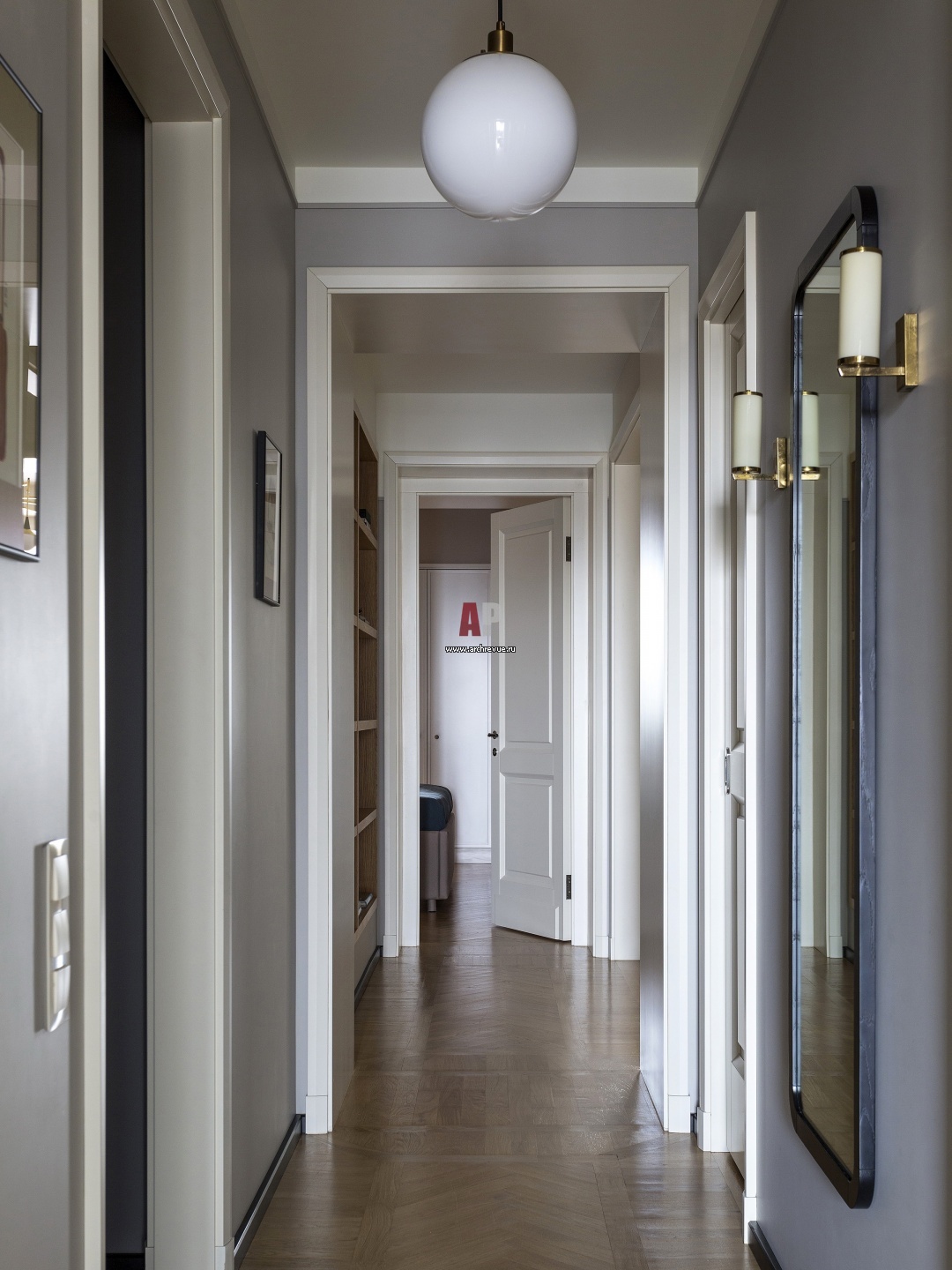 Семейная квартира в скандинавском стиле. Интерьер коридора. Двери, на заказ.
