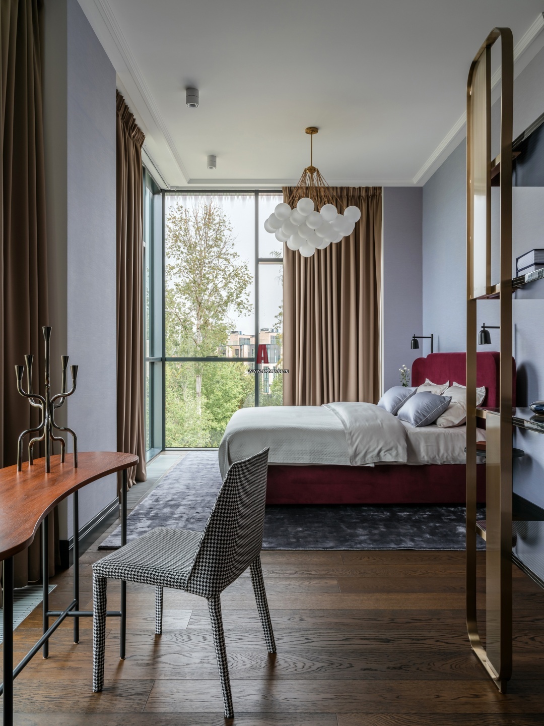 Одна из спален на третьем этаже разделена на две зоны: зону сна и мини-кабинет.