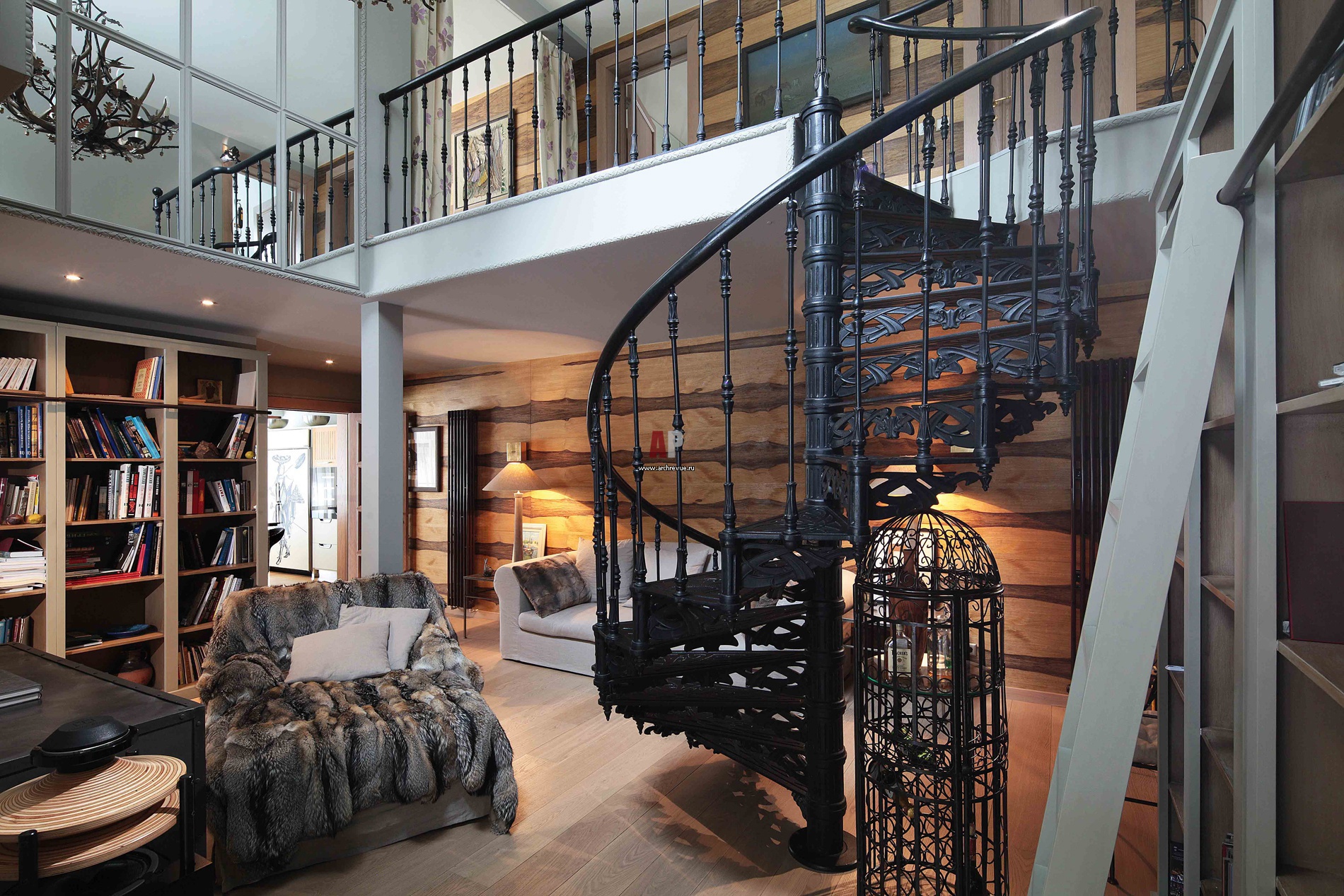 Винтовая лестница выполнена на заказ по эскизам автора проекта из чугуна. Ажурная конструкция выглядит необыкновенно легкой и изящной. Изготовление лестницы, компания Iron Studio.