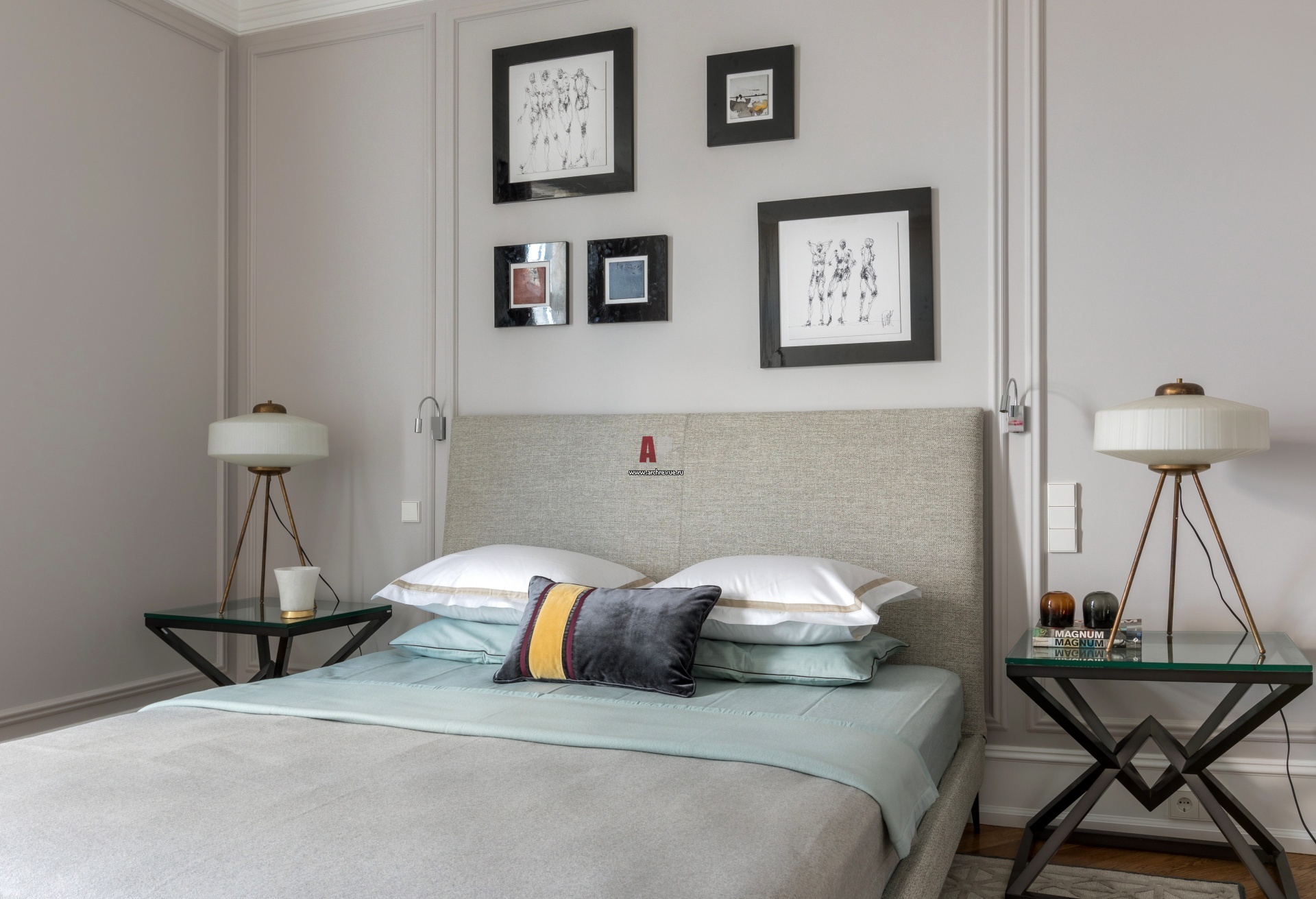 Ванная комната оформлена в монохромной палитре в духе современной классики. На полу – керамическая двухцветная мозаика. Сантехника, Villeroy & Boch.