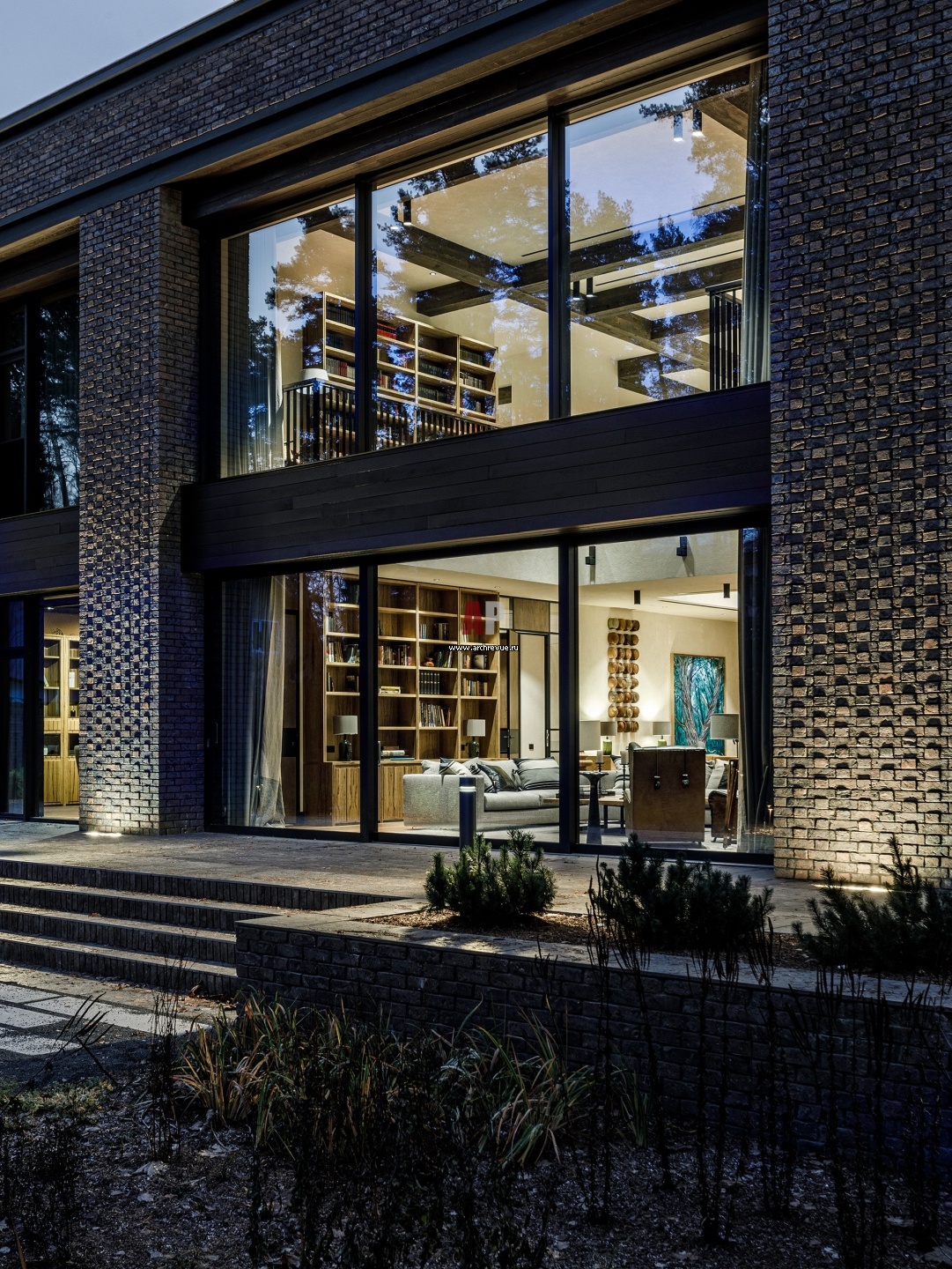 Дом построен по проекту архитектора Павла Громова. Фасад облицован кирпичом ручной работы со структурной кладкой.