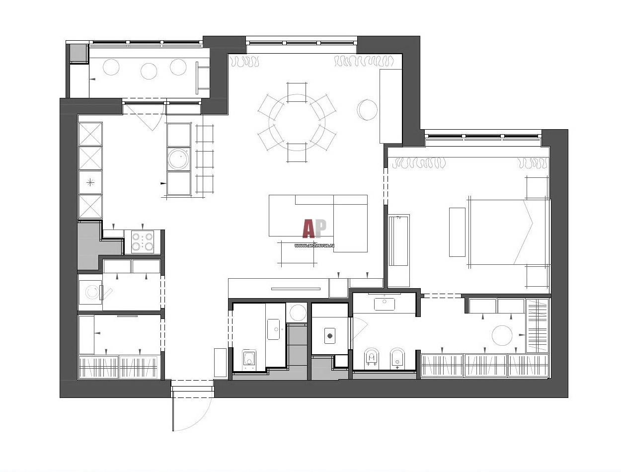 План двухкомнатной квартиры для молодого мужчины. Общая площадь – 75 кв. м.