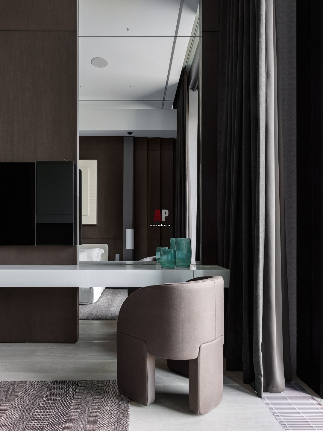 Гостевая спальня. Зона с туалетным столиком и вертикальным зеркалом.