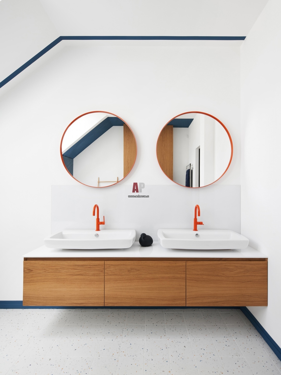 Детская ванная комната в мансарде. Сантехника, Gruppo Sanitari Italia. Тумба выполнена на заказ.