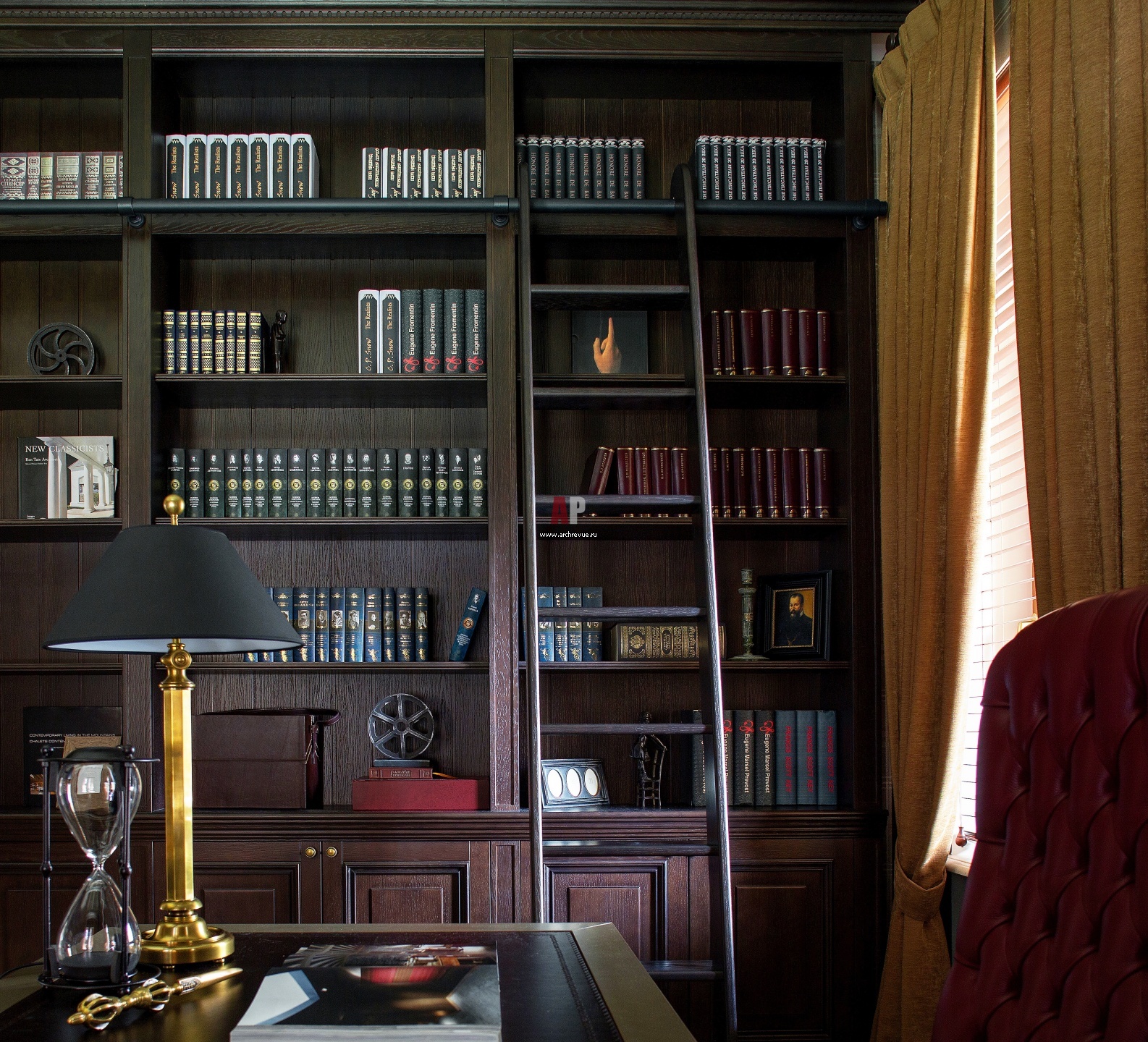 Особняк в стиле французской классики. Интерьер кабинета-библиотеки.