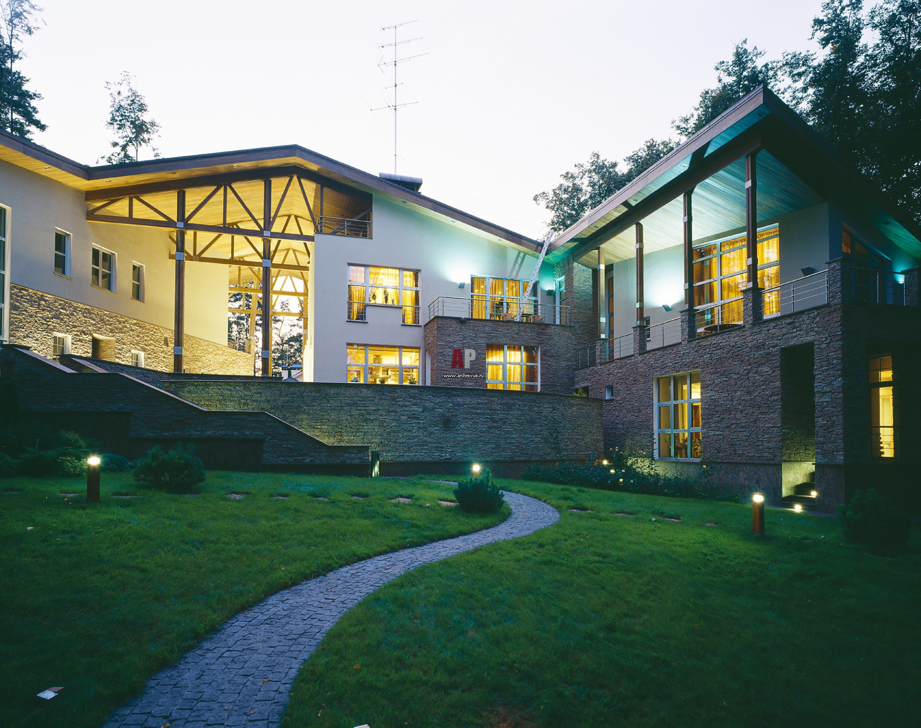 Вечернее освещение патио. Использованы современные возможности построения систем архитектурного и ландшафтного освещения.