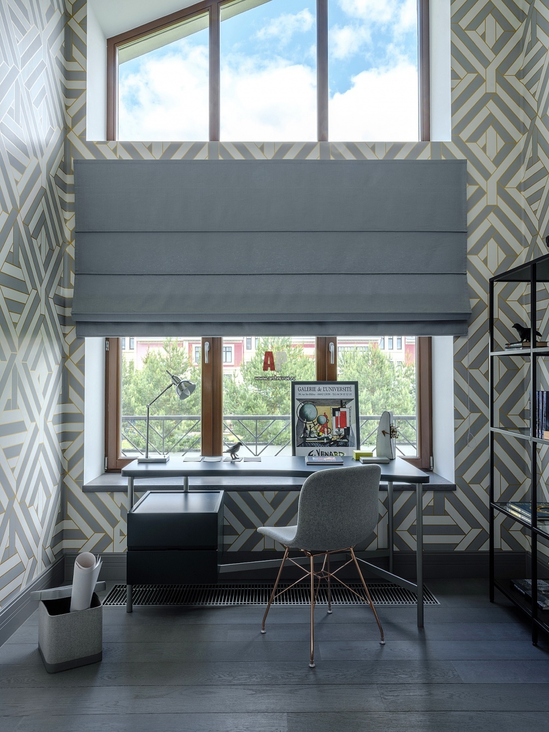 Детская комната в мансарде. Графичные обои, Nobilis. Письменный стол, Sangiacomo.