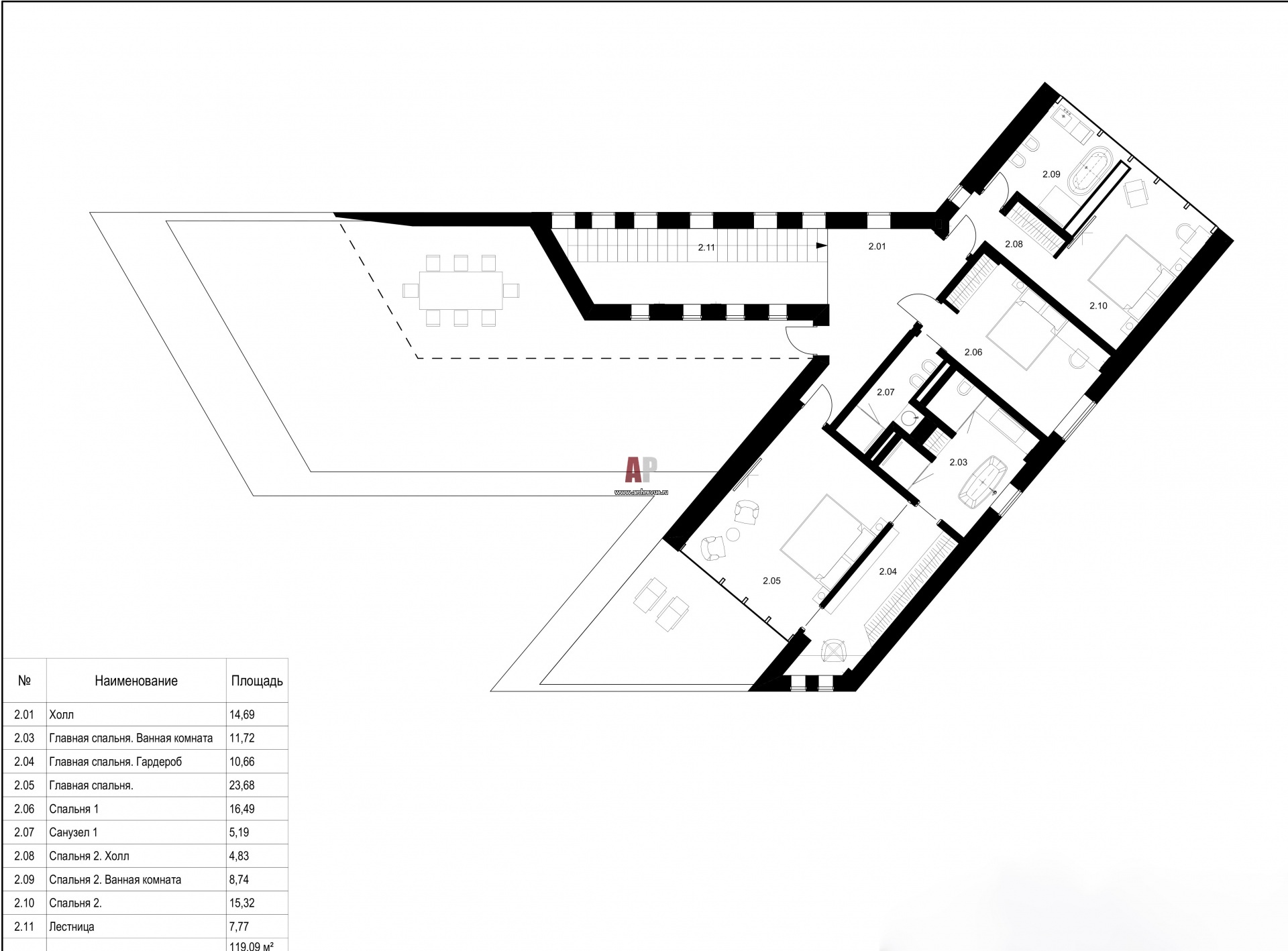 Парящий дом. Планировка 2 этажа 2-х этажного дома на компактном участке.