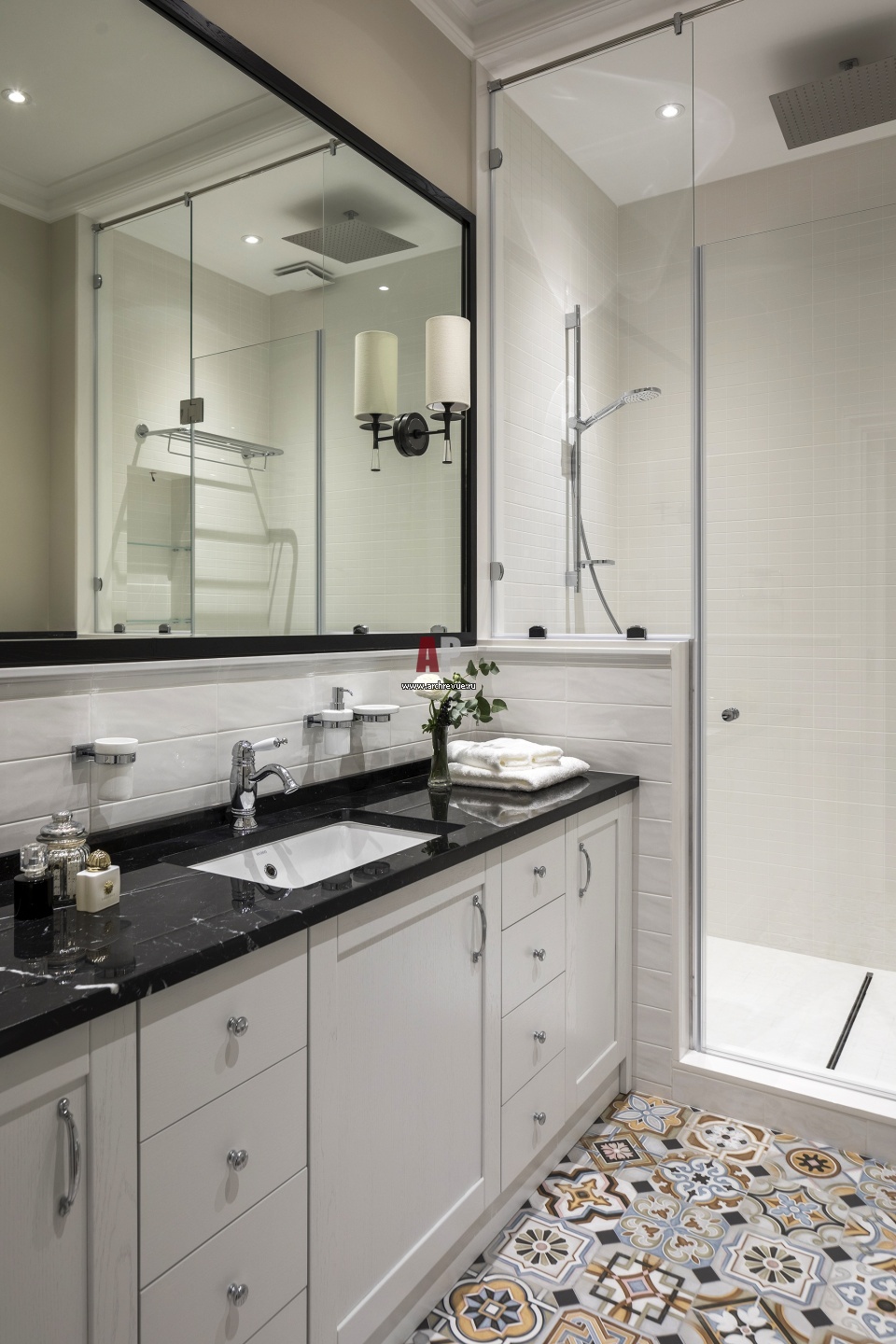 Хозяйская ванная комната. На полу – керамогранит Artistic Tile, коллекция Eleven.