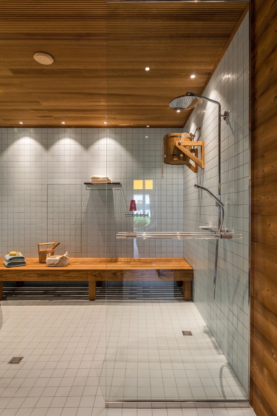 Загородный дом в стиле современного фахверка. Интерьер парной.