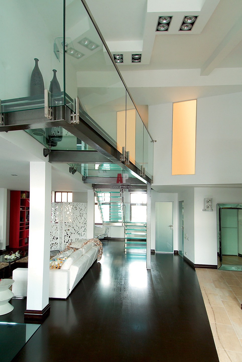 Ажурная фирма из крашенного в белый цвет металла отделяет гостиную от кабинета. Узоры-трафареты пропускают солнечный свет и позволяют видеть, что происходит в помещениях.