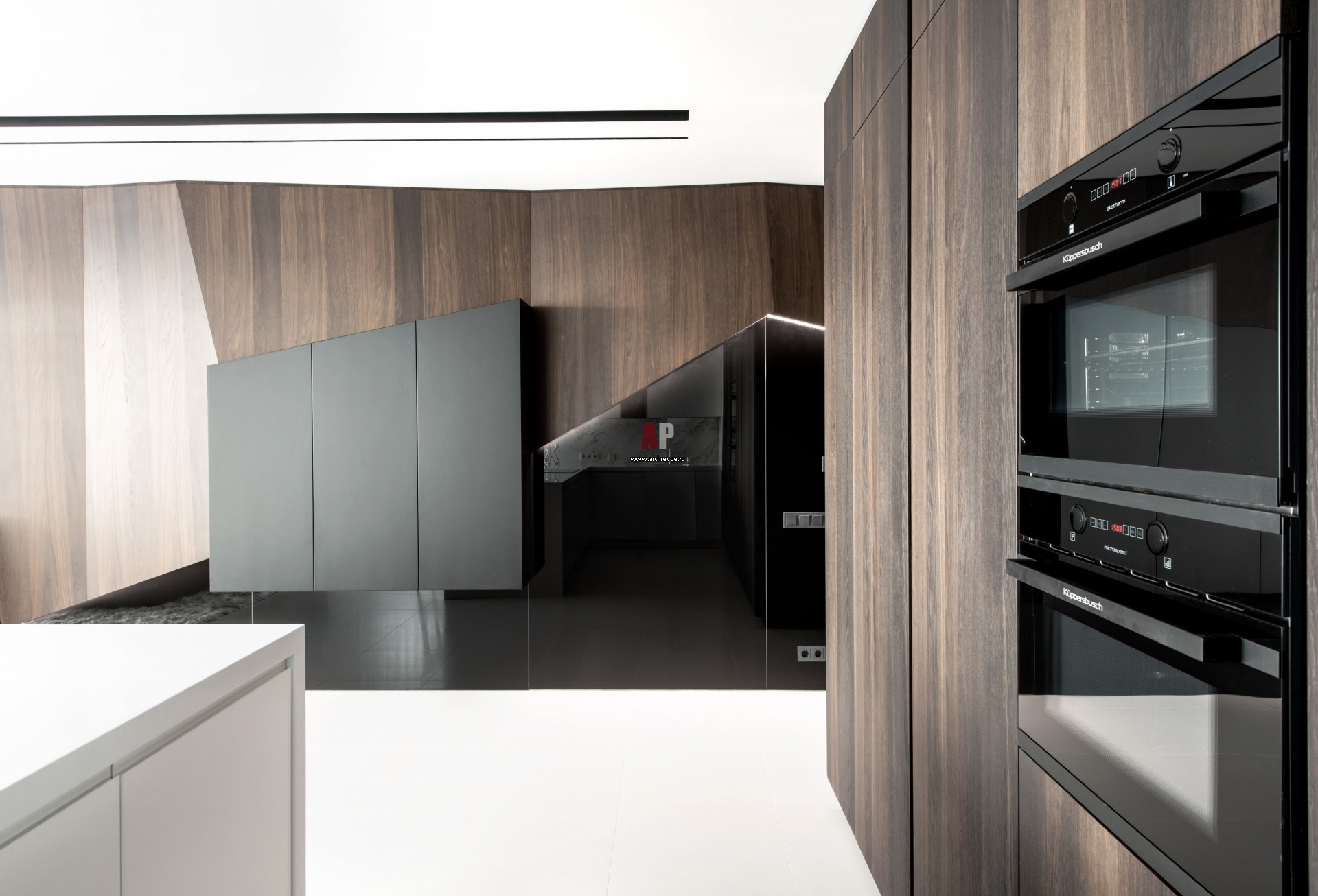 Кухня. Кухонная мебель, Cesar. Навесные шкафы на ломаной конструкции изготовлены по эскизам авторов проекта – компания «АФ Ника».