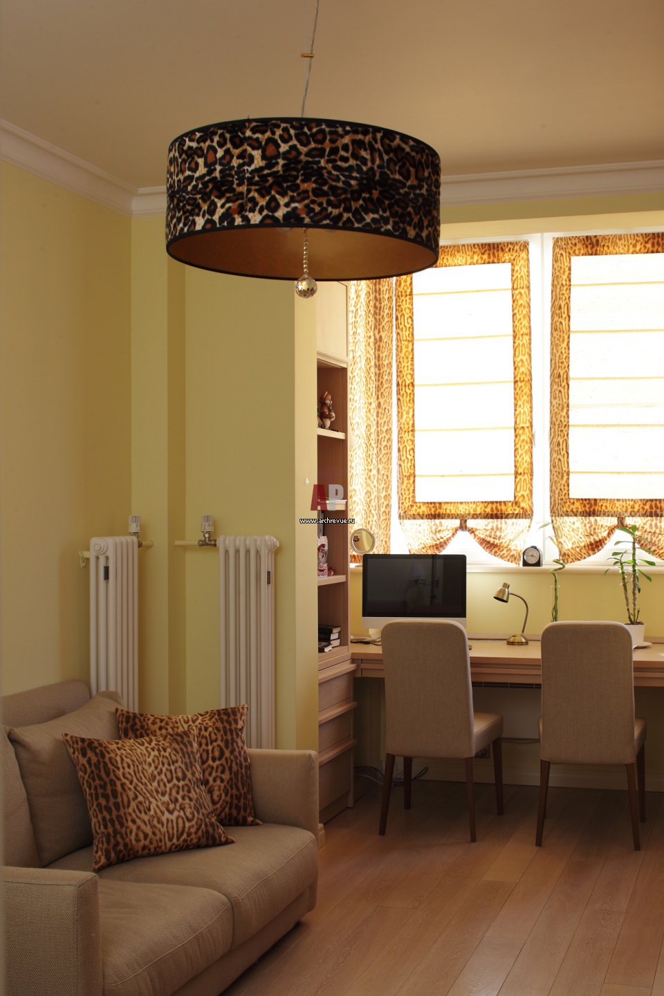 Детская комната в ярко-желтых тонах, с элементами стиля сафари.