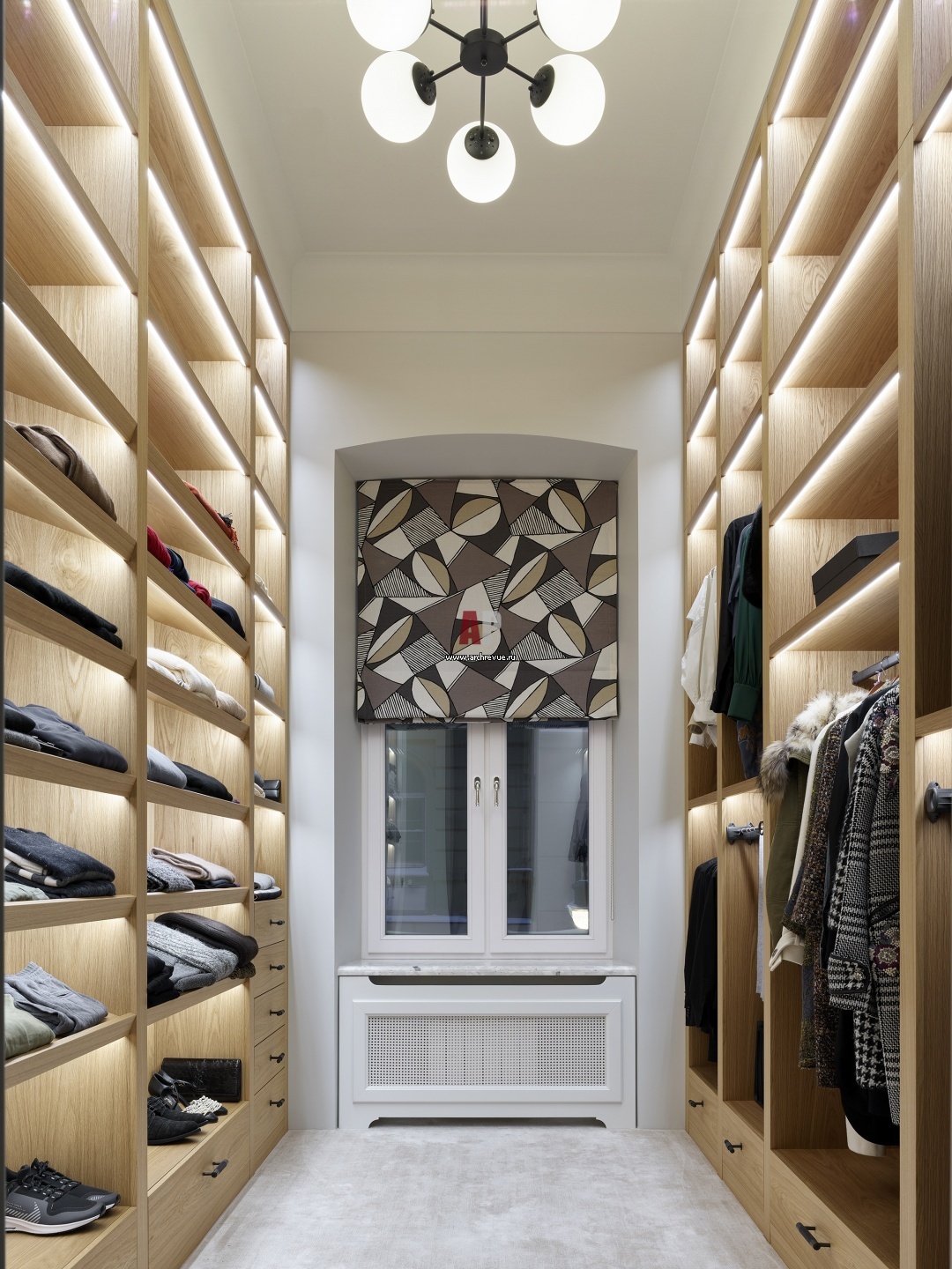 Эклектичная квартира в историческом доме в центре Москвы. Гардеробная комната с окном.
