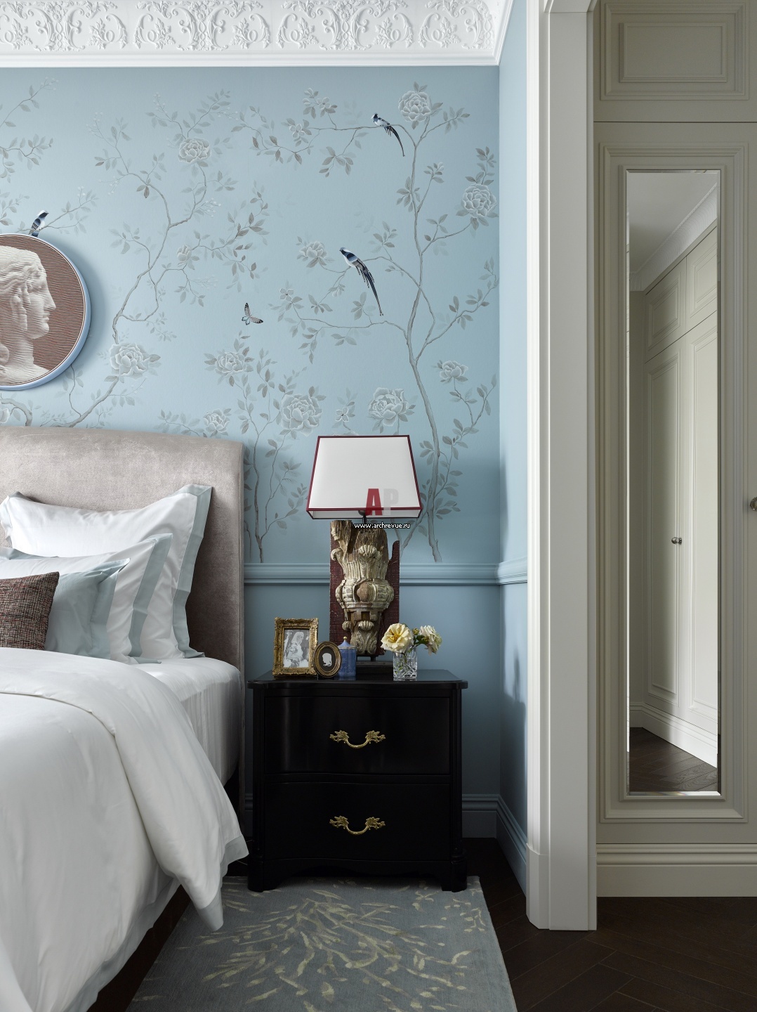 Фрагмент хозяйской спальни. Лампы настольные, Mis en Demeure. Абажуры, «Студия Bottega».