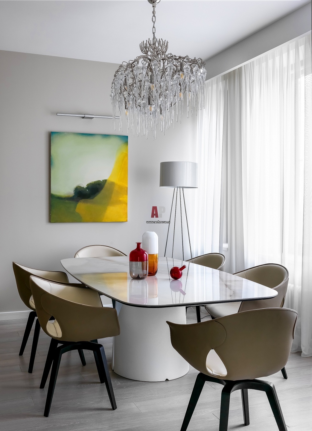 Квартира для большой семьи. Интерьер столовой. Kартина, художник Ф. Акимова.