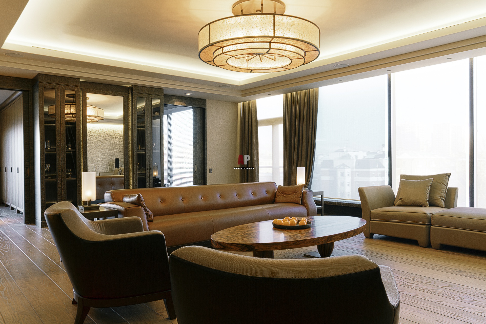 Эко-интерьер имеет сложную техническую начинку. С помощью системы «умный дом» с одного пульта можно управлять кондиционированием, домашним кинотеатром, камином и шторами. Рольфшторы из светоотражающего материала с электроприводом, поставщик «ТРИО-Интерьер».