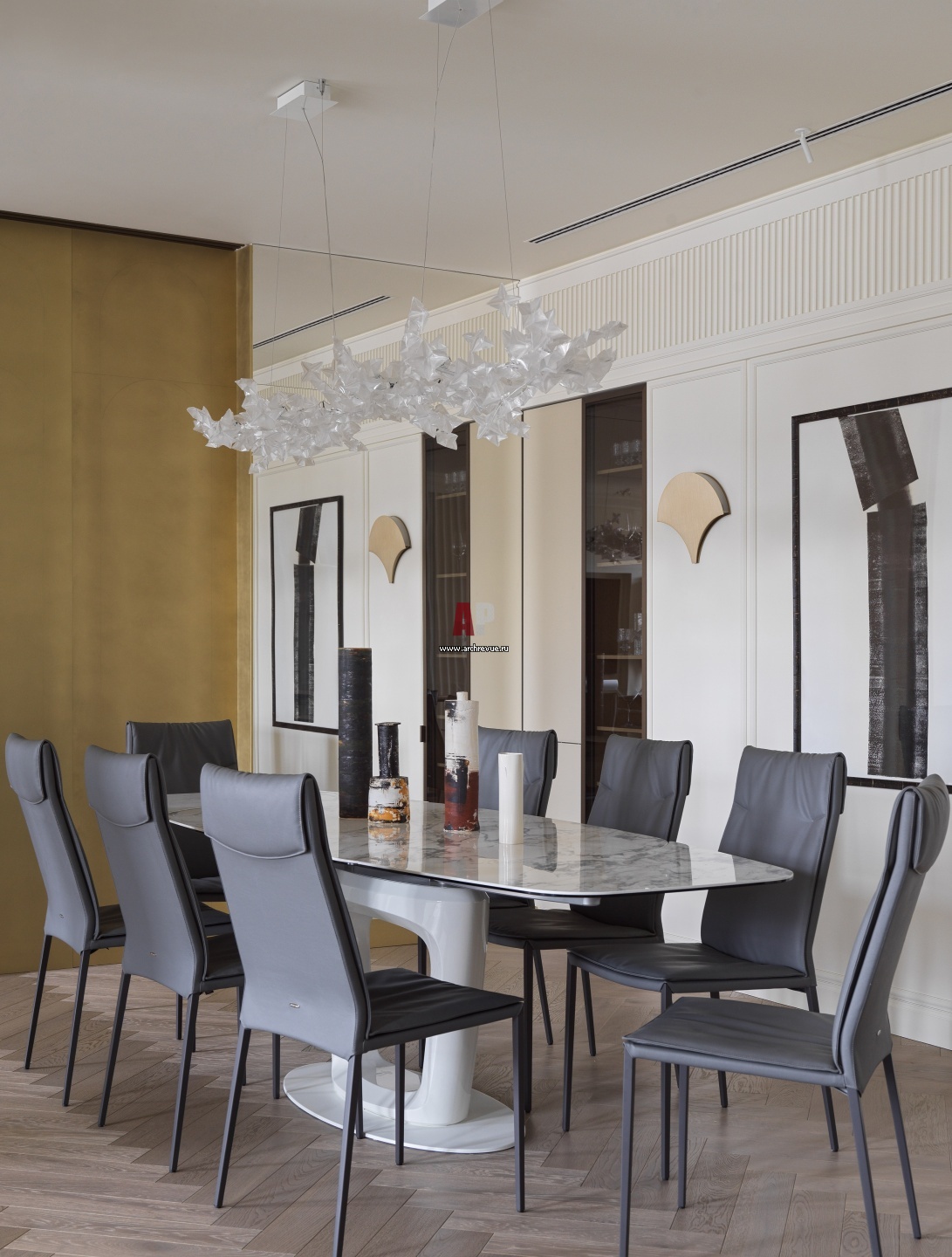 Столовая группа в общей гостиной. Стол и стулья, Cattelan Italia. Люстра, Slamp.