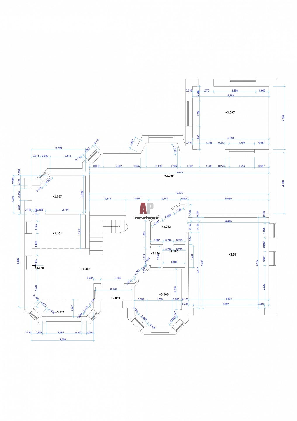 Обмерный план первого этажа 2-х этажного дома площадью 350 кв. м.