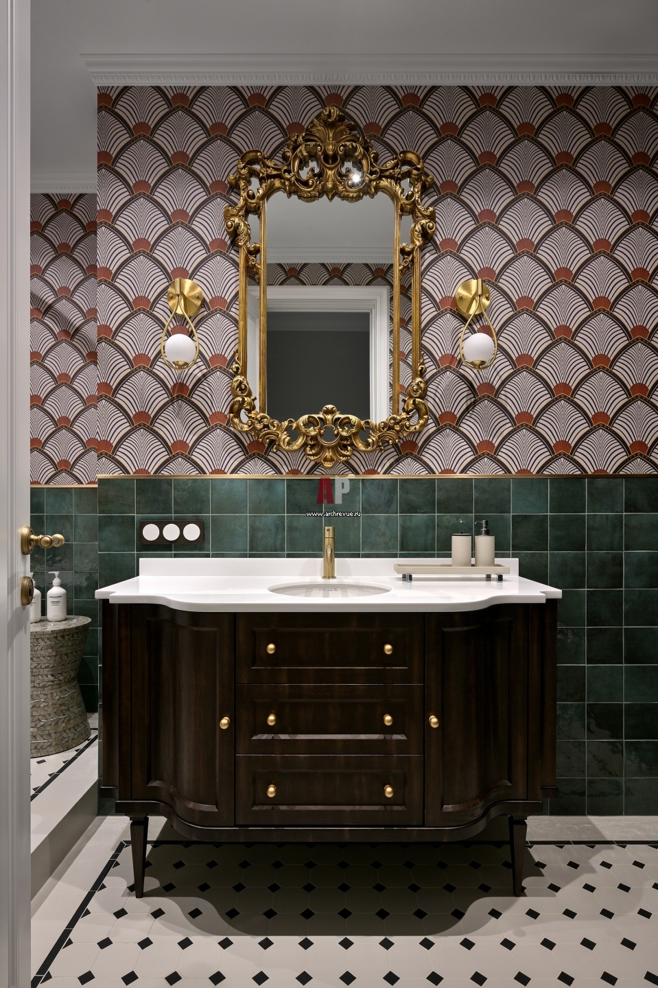 Мастер-санузел в стиле французской неоклассики. Плитка, Equipe Ceramicas, серии Artisan и Monacor. Смеситель, Nicolazzi.