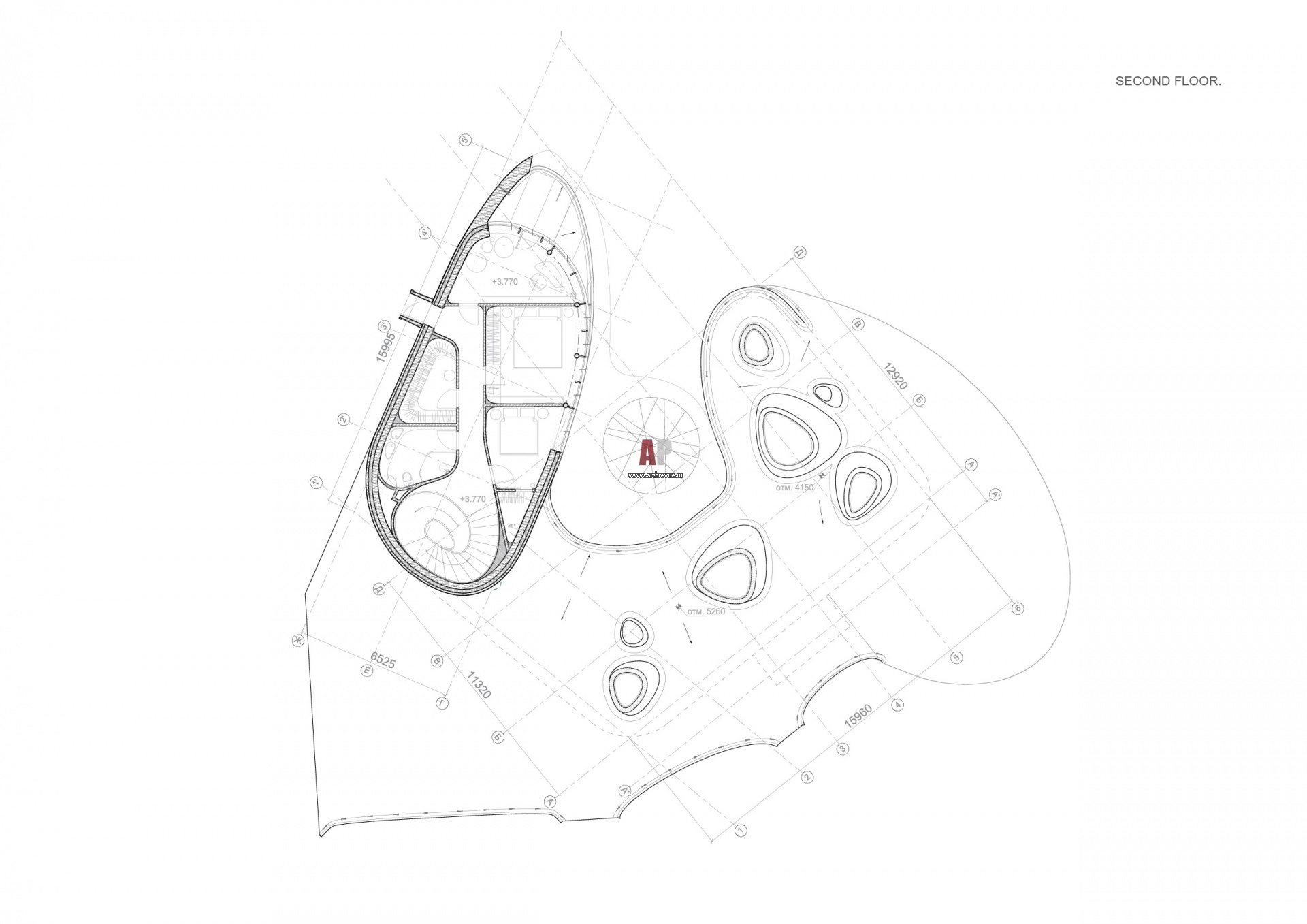 План второго этажа двухэтажного дома с бионической архитектурой. Общая площадь – 300 кв. м.