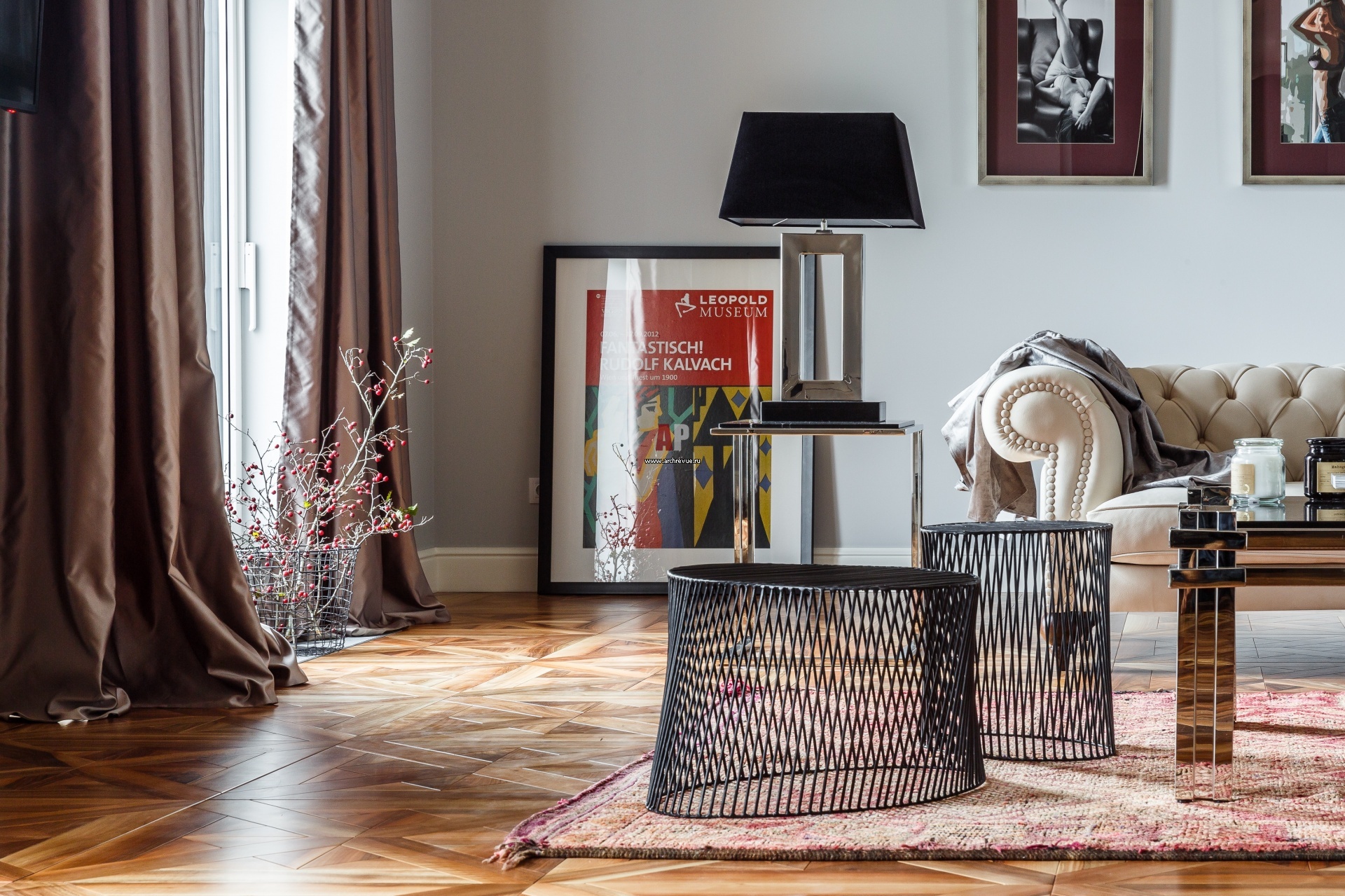 Спокойный интерьер гостиной дополнен стильными аксессуарами: фотографиями Хельмута Ньютона и картинами краснодарского художника Сергея Яшина.