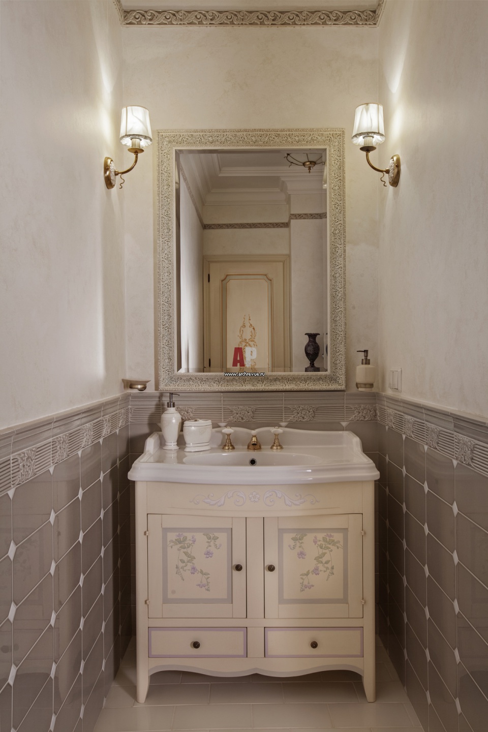 Дизайн гостевого санузла в доме с элементами стиля Прованс.