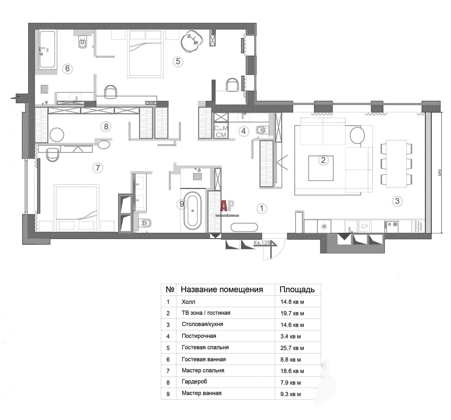 План квартиры с дизайнерским ремонтом на продажу. Общая площадь – 120 кв. м.