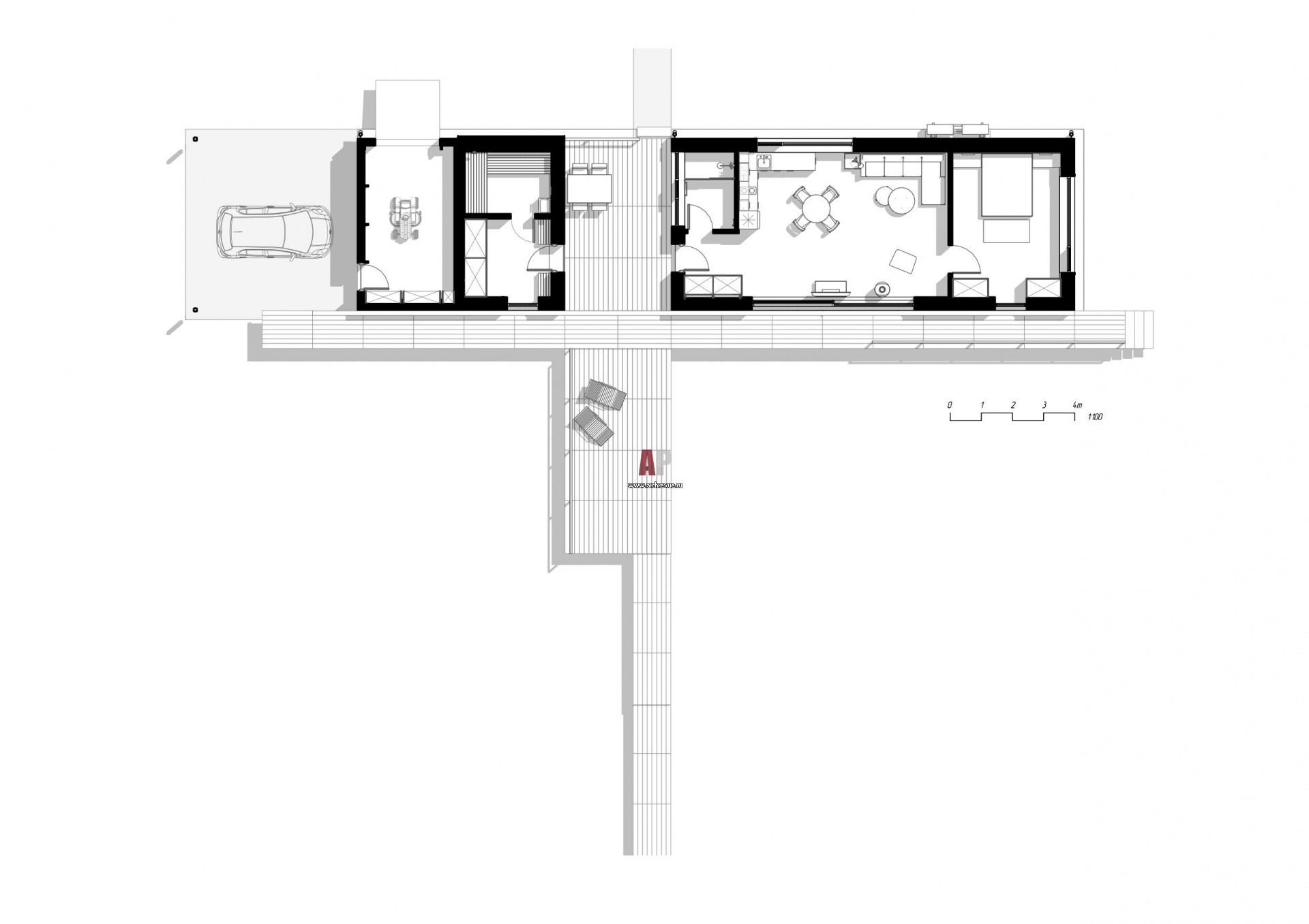 План каркасного минималистичного дома. Общая площадь – 130 кв. м. Жилая площадь – 86 кв. м.