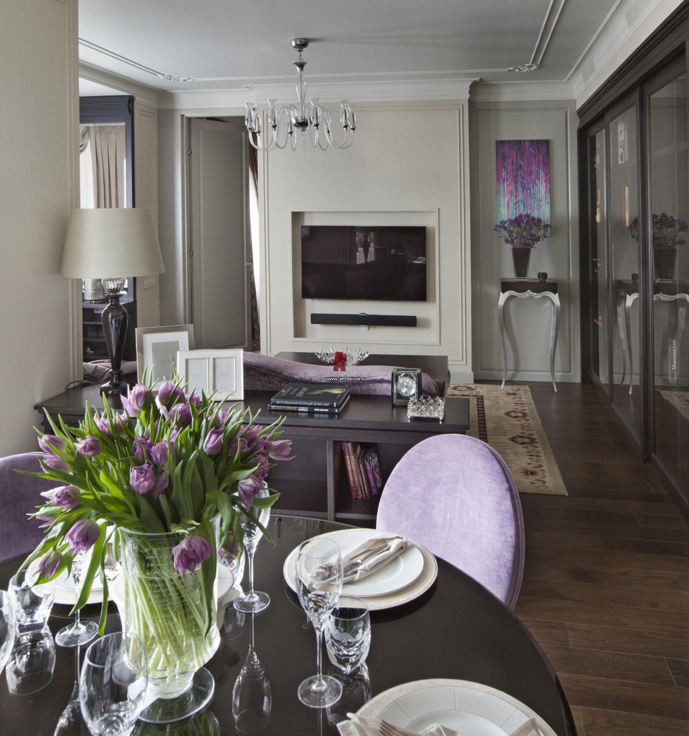 Дверь из гостиной ведет в спальню. Поскольку квартира проектировалась для двоих, то решение с перетекающими помещениями и без коридоров оказалось оптимальным.