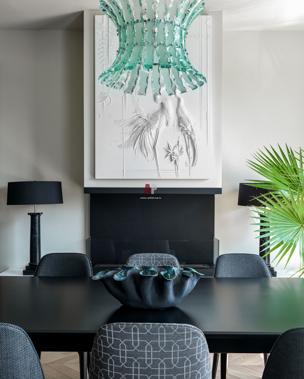 Московская квартира с гипсовым барельефом. Интерьер столовой.