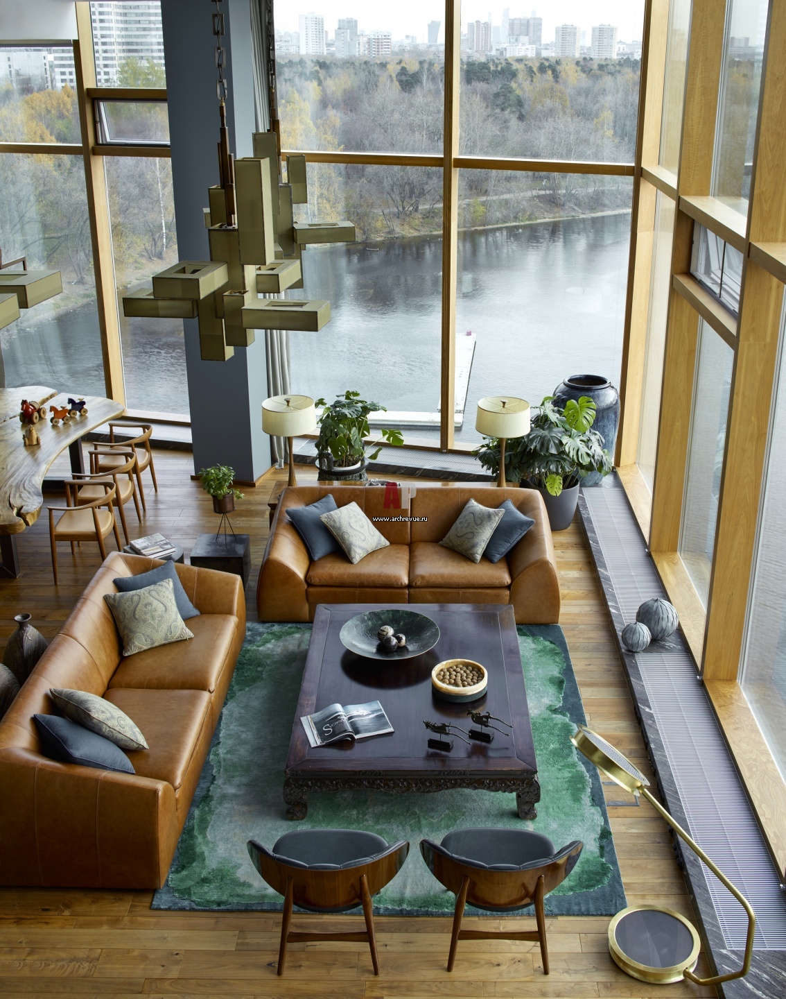 Чтобы охлаждать прогреваемые солнцем помещения стеклянного объема, архитектор заложила в проект мощную систему вентиляции и кондиционирования, а также оснастила окна системой блэк-аут с электроприводом. Сами окна она также облагородила, скрыв неэстетичный алюминиевый профиль за деревянными накладками.