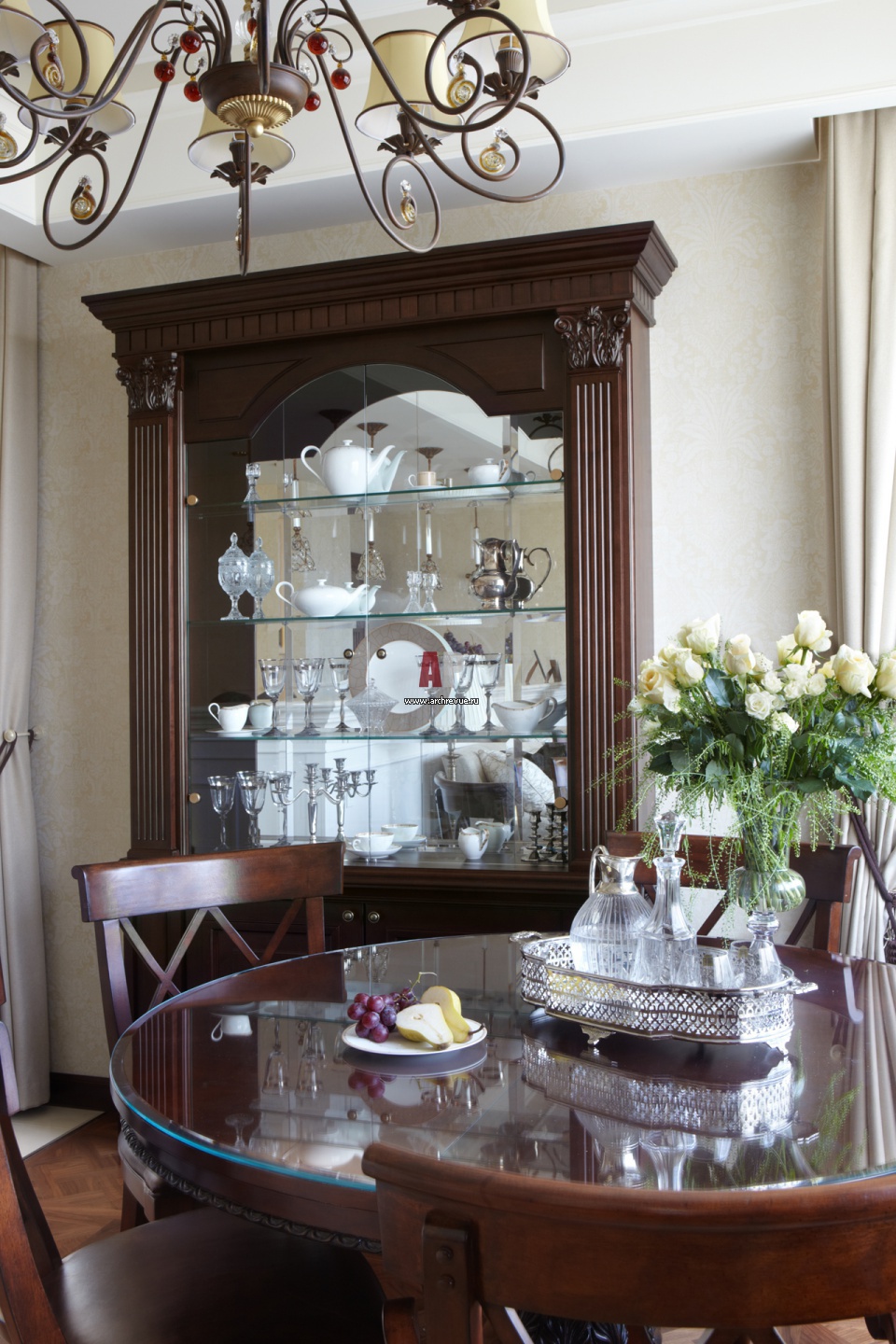 Интерьер столовой. Круглый стол, стулья, поставщик Park Avenue. Буфет, по эскизам дизайнера, изготовление Intar Plus.