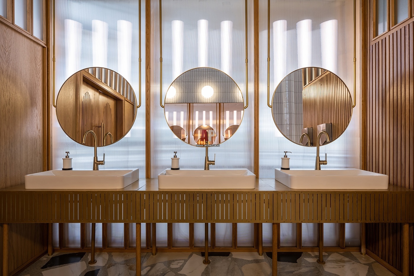 Фото интерьера санузла ресторанного комплекса в стиле минимализм