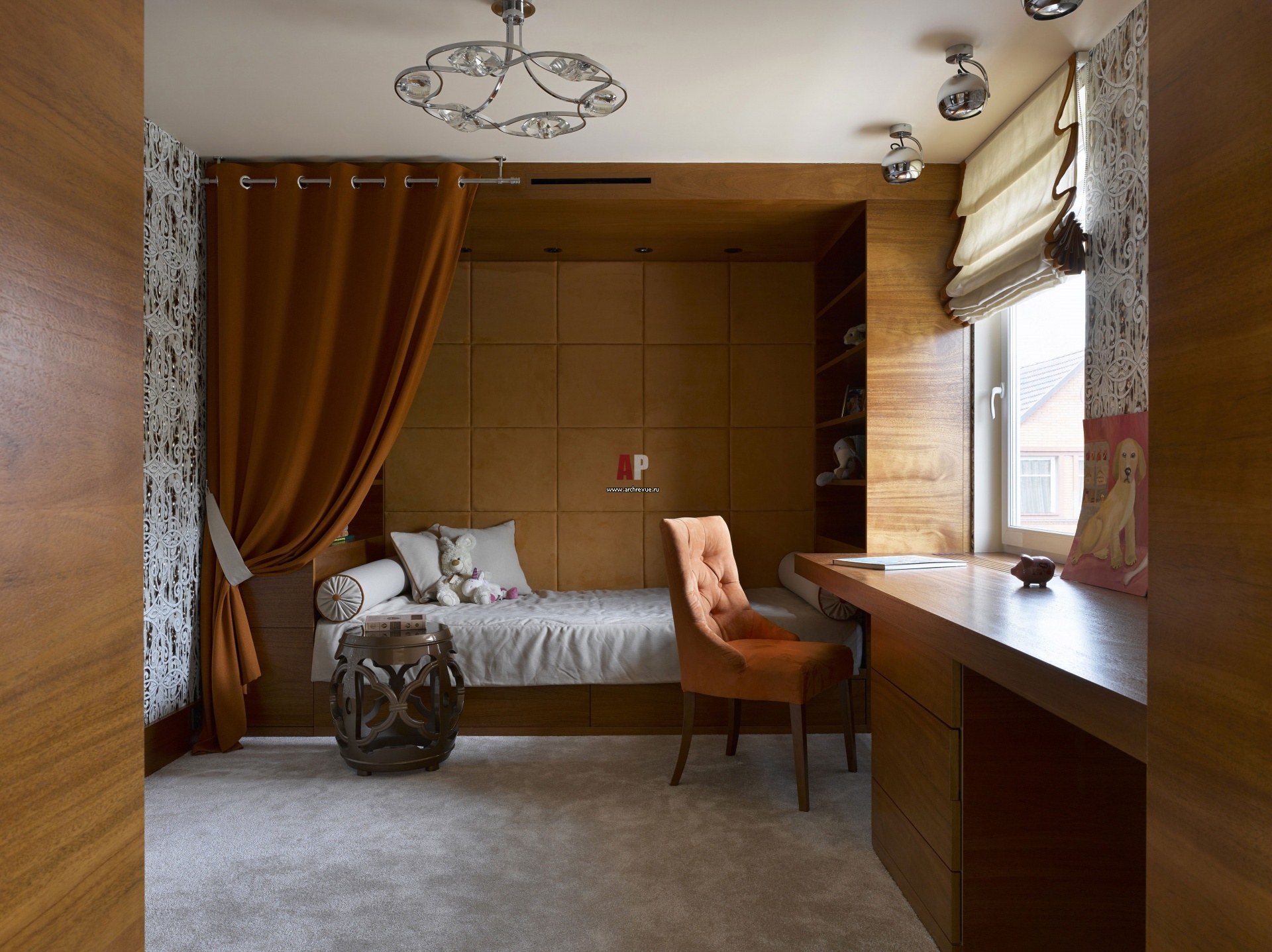 Двухэтажный дом для семьи с тремя детьми в Подмосковье. Интерьер детской девочки.