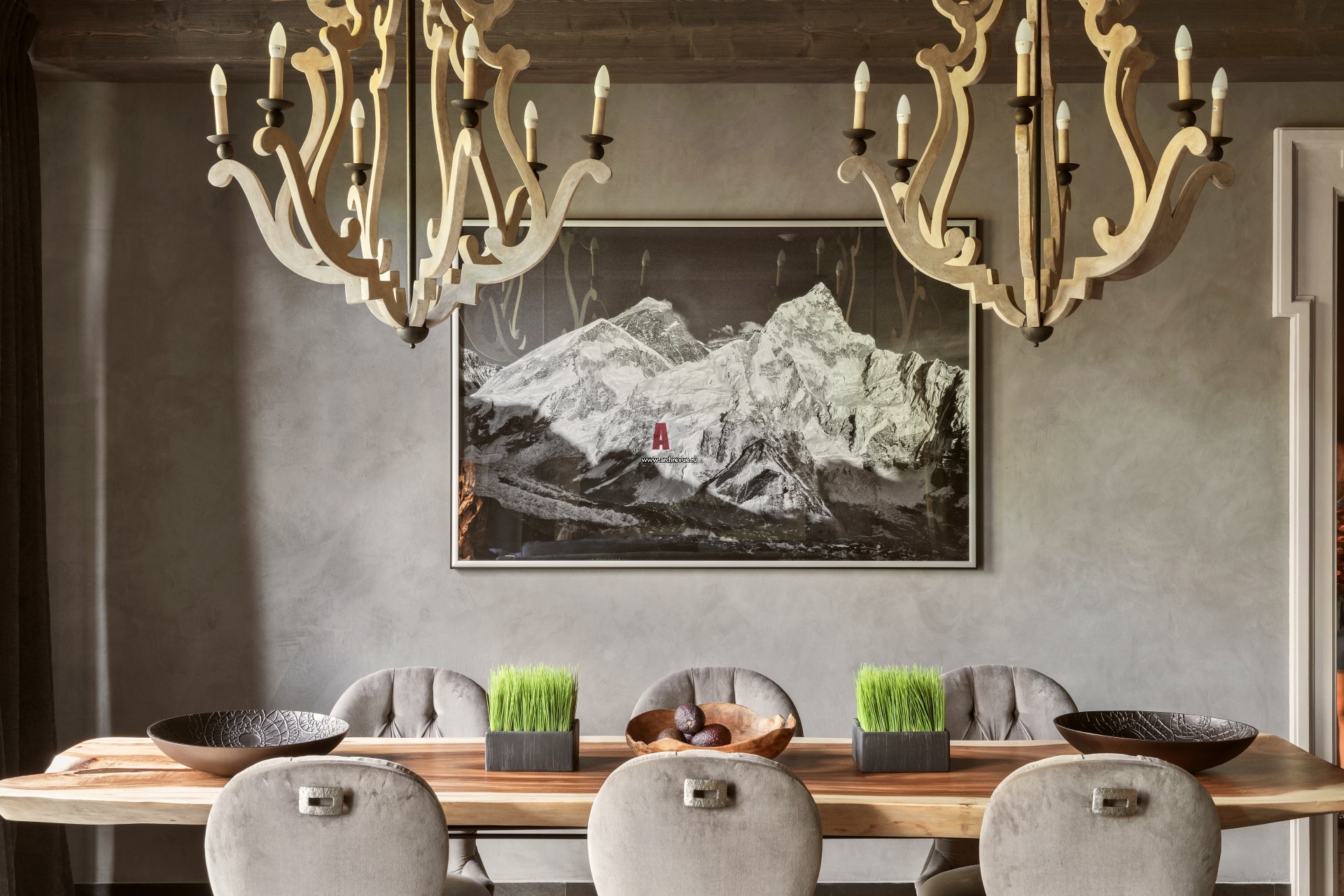 Фламандская усадьба в Подмосковье. Столовая в гостевом доме. В интерьере помещения фламандская эстетика соединилась с традиционным альпийским дизайном.