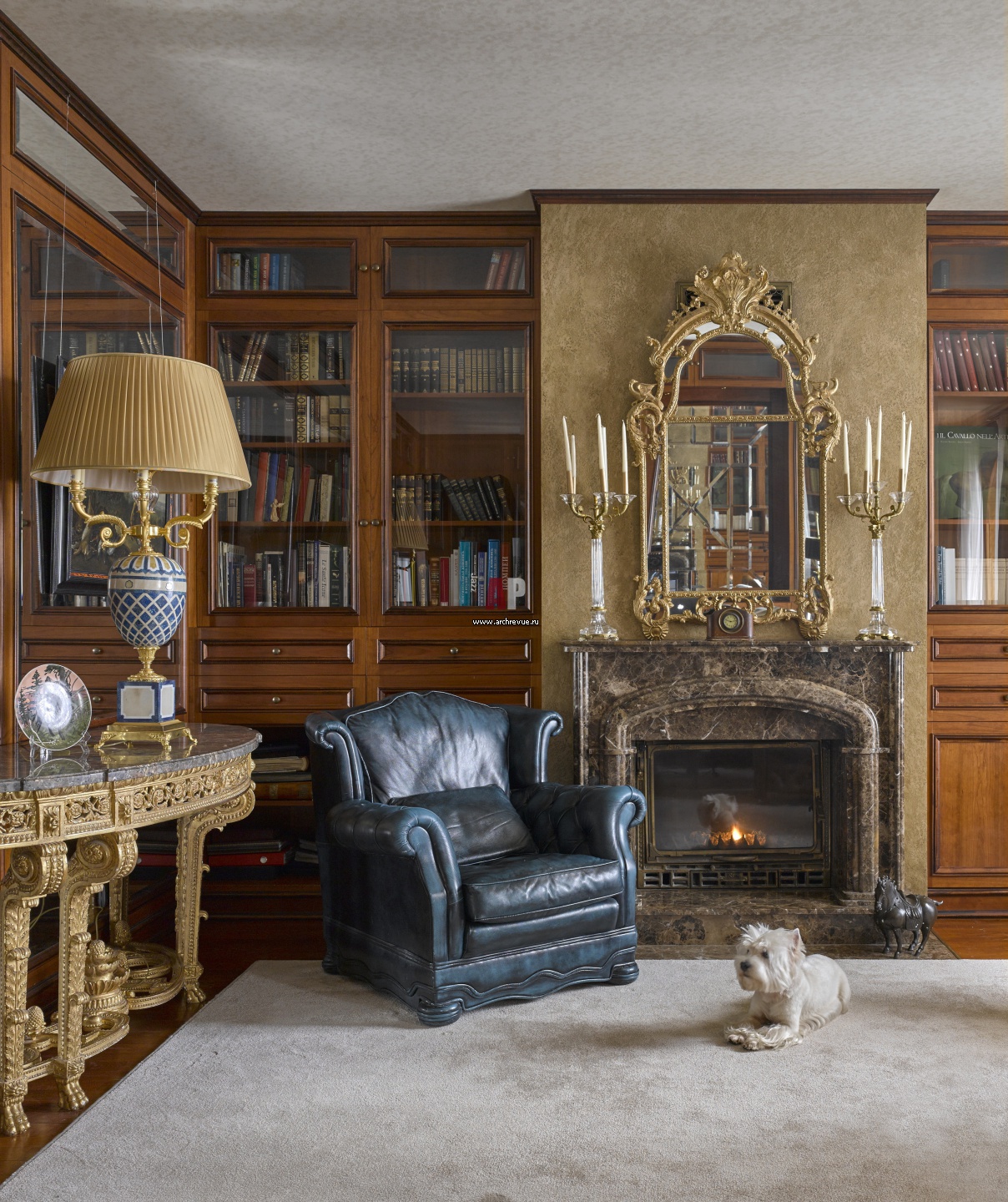 Каминная группа в интерьере московской квартиры. Два действующих камина с живым огнем – настоящая роскошь для городского жителя.