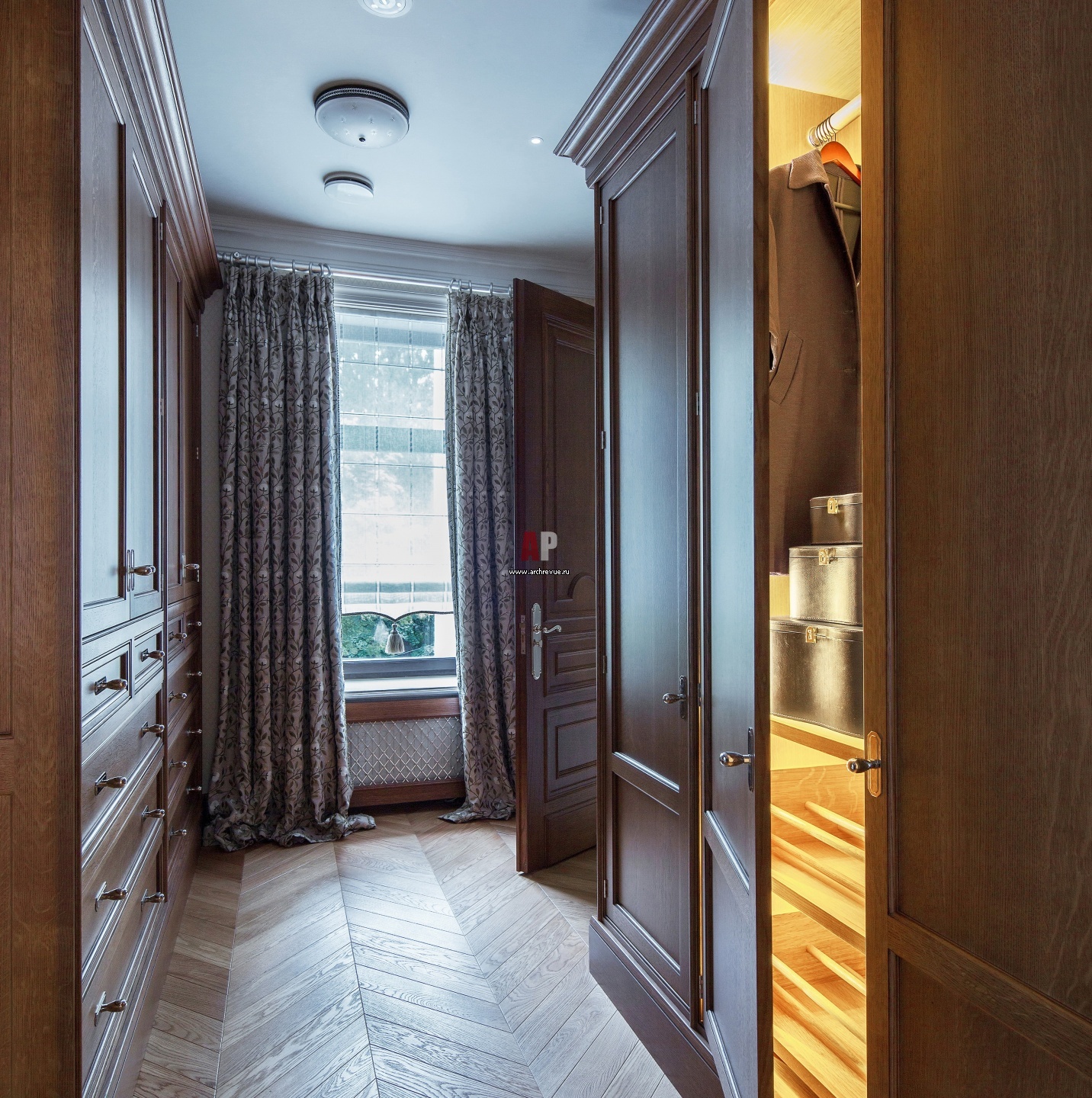 Интерьер гардеробной комнаты. Столярные изделия выполнены в бюро Olga Kushnareva-Leone Architecture&Design.