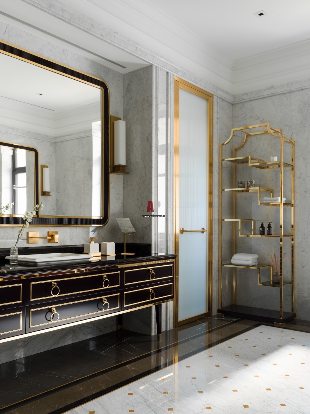 Хозяйский санузел оформлен в парадном классическом стиле. Сантехника, Gessi.